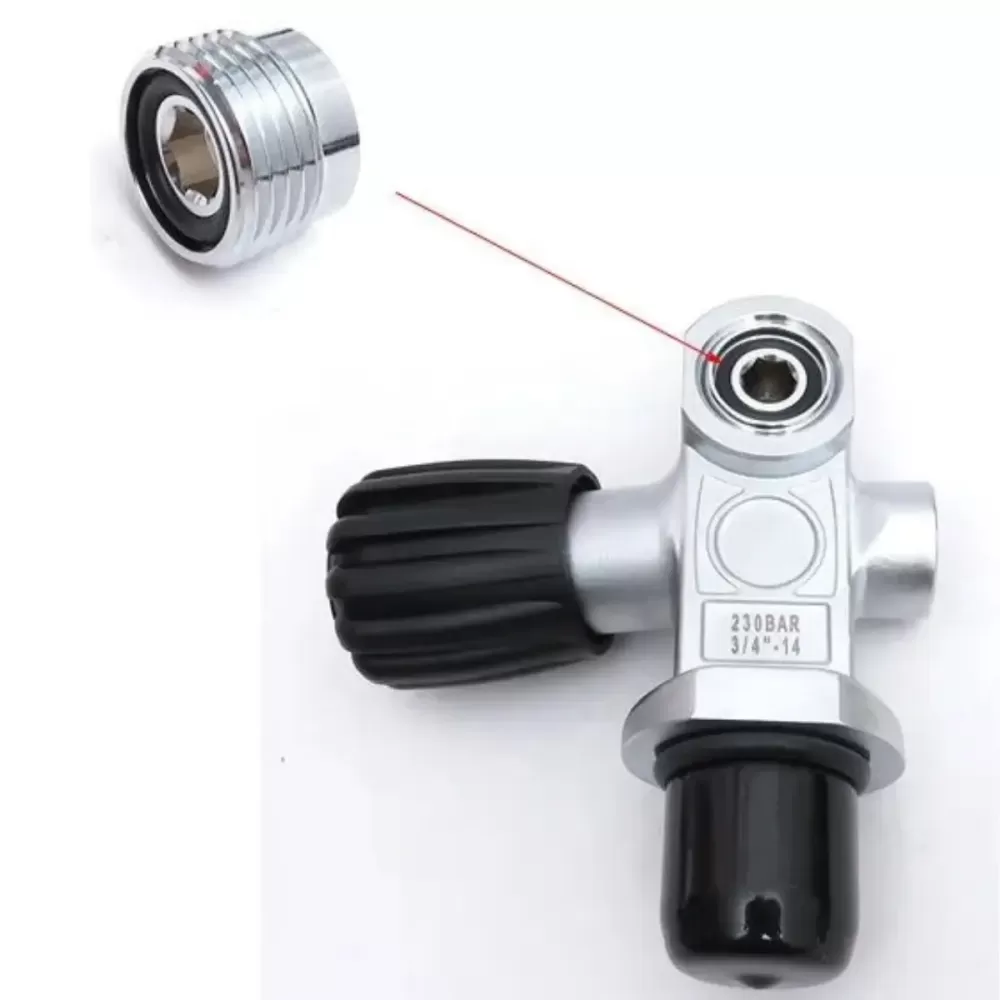 В нашей стране наиболее распространены регуляторы и баллоны типа DIN. Можно привести много причин за и против, но так сложилось. Но есть и такие, кто предпочитает регуляторы типа YOKE. Как правило, это те, кто предпочитает погружения в Мексике, в Азиатском регионе или Северной Америки. Но поскольку когда они совершают погружения в иных регионах, им приходится использовать адаптеры для баллонов, такие как переходник ввертный, который позволяет установить YOKE-регулятор на DIN-вентиль. Переходник является латунной хромированной гайкой с установленными на нее О-рингами. Для установки потребуется только специальный ключ-шестигранник. Как правило, если такого шестигранника у вас нет с собой, его можно легко найти у автолюбителей или в вашем Дайв Центре. А поскольку дайверам свойственно забывать их выкручивать, носите с собой запасной переходник, просто на всякий случай.
