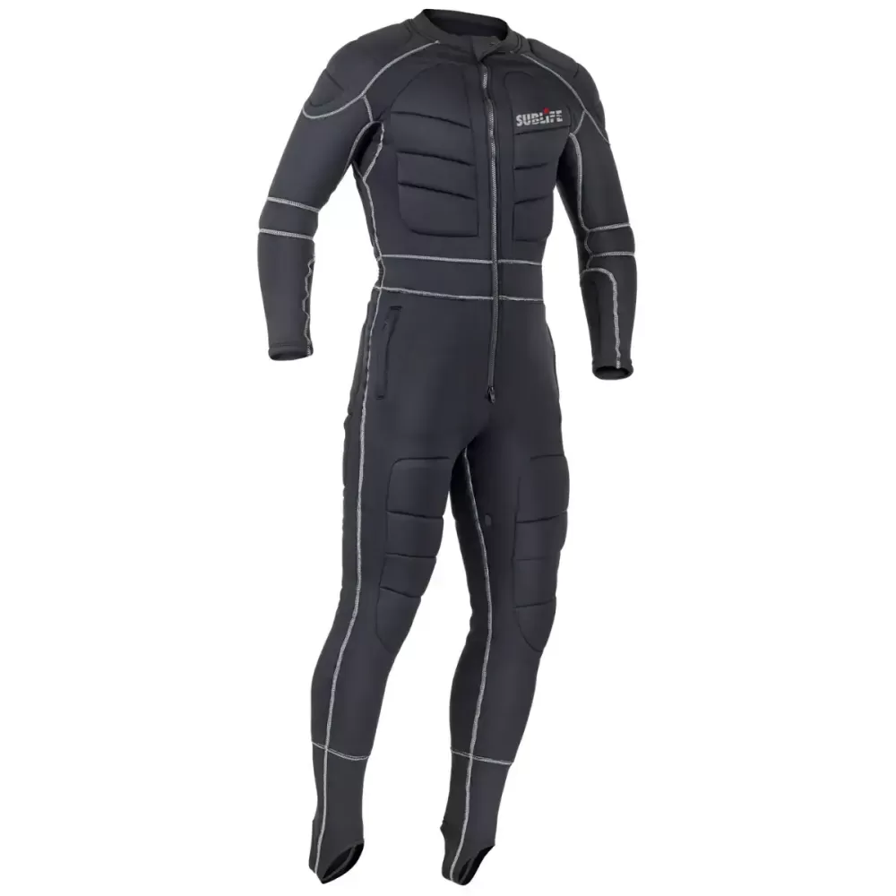 Специальные накладки в задней части, на груди, плечах и бедрах позволяют минимизировать дискомфорт при обжатии гидрокостюма.