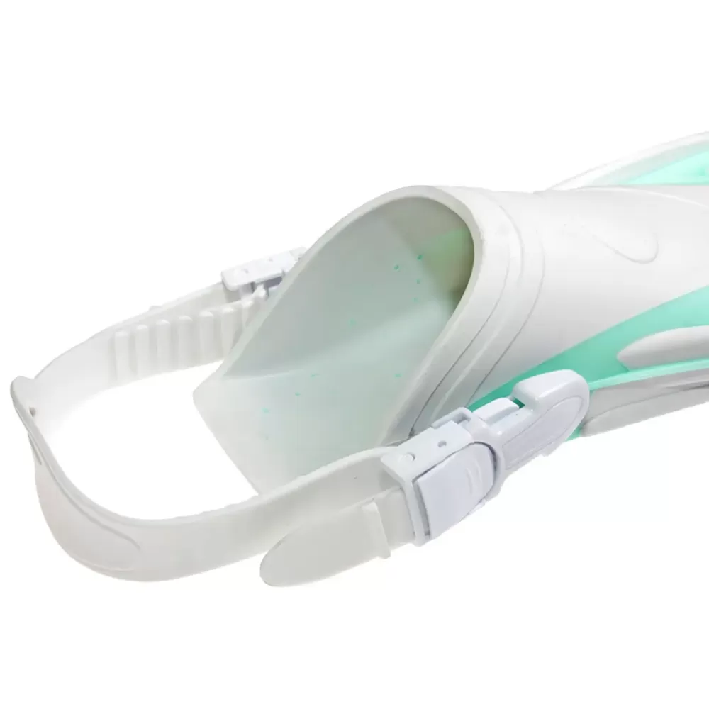 Открытая пятка и регулируемый силиконовый ремешок позволяют подогнать ласты под размер.