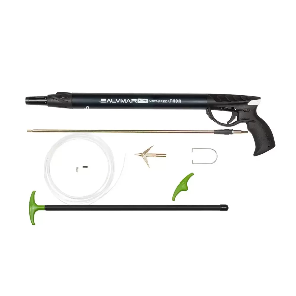 Комплектация: Ружьё, гарпун 8 мм (в сборе), наконечник, монолинь, зажимы 2 шт, заряжалка, насос, инструкция, упаковка, ключ. Правила эксплуатации: Не допускайте засоров ствола, промывайте гарпун и надульник от частиц песка и ила. Не вставляйте дулом в грунт. Промывайте пресной водой после моря. Пневматическое ружьё рассчитанно на работу под водой, выстрел на суше неминуемо приведёт к поломке. Безопасность: Ради Вашего здоровья и безопасности окружающих — не привязывайте ружьё к руке и не направляйте во взведённом состоянии на людей, действия по заряжанию и разряжанию осуществляйте строго в воде.