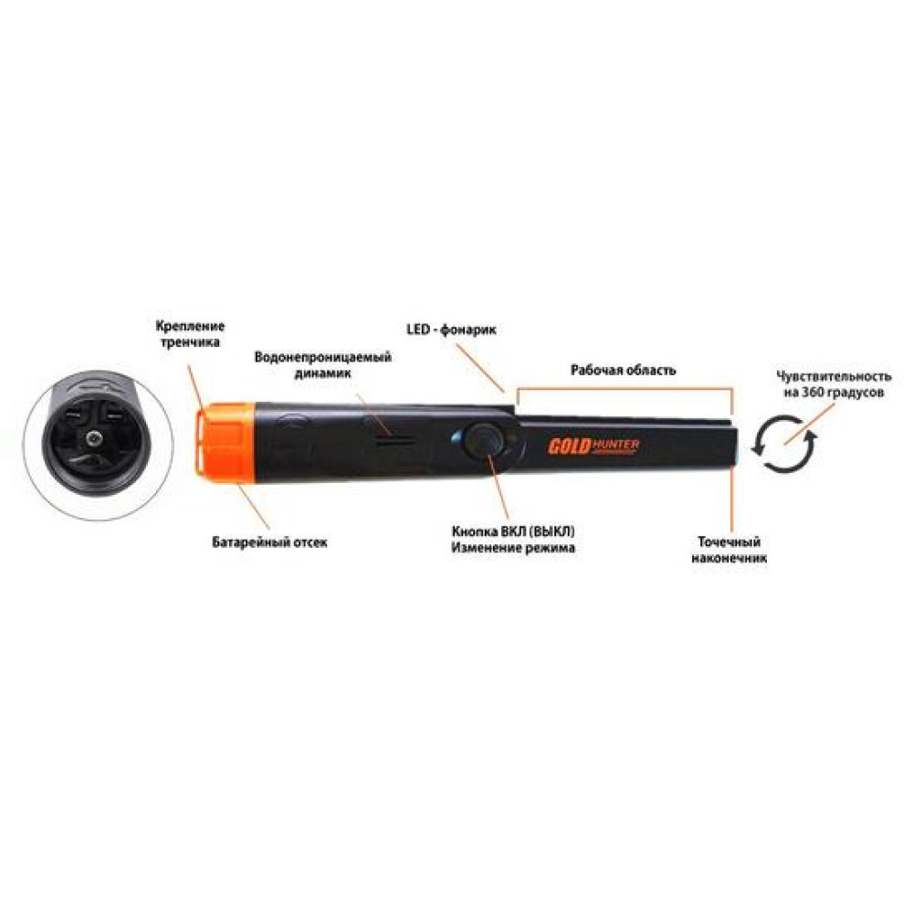 Gold Hunter TM имеет высокую чувствительность Что у Вас будет в комплекте: Пинпоинтер Gold Hunter TMR — 1 шт.Кобура для переноски — 1 шт.Тренчик-непотеряйка — 1 шт.USB кабель- 1 шт.Инструкция пользователя — 1 шт.Фирменная упаковка (коробка).