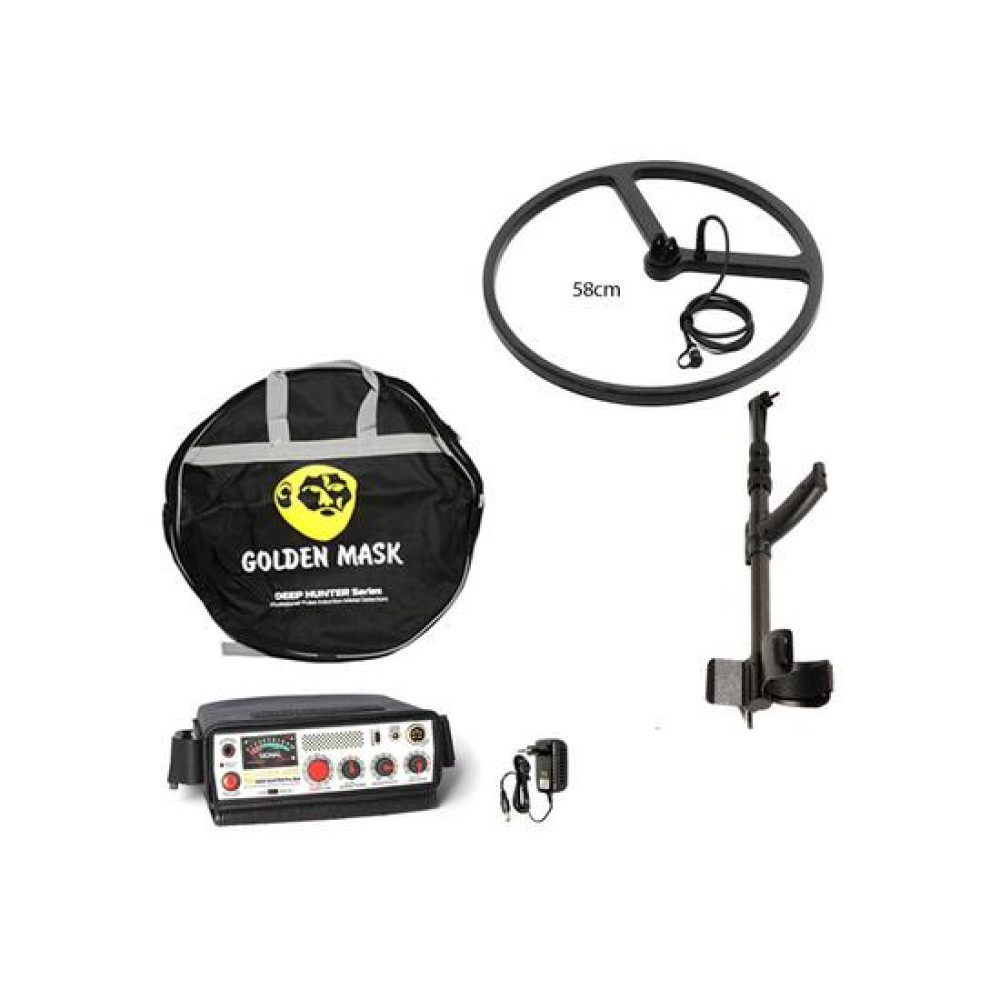 Deep Hunter Pro 3 SE оснащен специальной системой PLNR (Power Line Noise Reduction) для комфортного поиска около 50 линий электропередачВ нашем магазине вы можете купить металлоискатель Golden Mask Deep Hunter Pro3 SE с катушкой 58 см по отличной цене.ВНИМАНИЕ! Pro3 SE и Pro3 используют недавно разработанные катушки, которые не совместимы с предыдущими моделями! Катушки Pro 3 (SE) будут работать только на Pro 3 (SE)! Технические характеристики:Частота675 ГцБаланс грунтаРучной/ автоматическийНастройкиГромкость звука, чувствительность, баланс грунта/мусора, частота звука, режим boost c регулятором, индикатор батареиРежимы поискамедленное движениеФормат катушкикруглаяПитание2600 mAh NiMH перезаряжаемый аккумуляторы (10xAA)Время работы батарей10 часов Беспроводные наушникинетВход для наушников6,35 мм - 1/4"Вес2 кг Гарантия5 лет на электронику, 2 года на катушку и зарядное устройство Комплектация товара:Глубинный металлоискатель Golden Mask Deep Hunter Pro 3 SE (блок) -1 шт.,Поисковая катушка 58 см - 1 штШтанга телескопическая - 1 штЗарядное устройство - 1 штСумка-чехол для блока (кожа) - 1 штФирменный гарантийный талон — 1 шт
