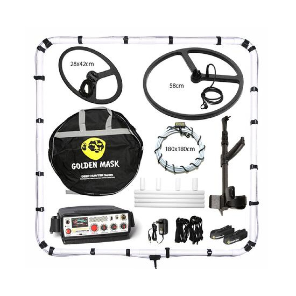 Deep Hunter Pro 3 SE оснащен специальной системой PLNR (Power Line Noise Reduction) для комфортного поиска около 50 линий электропередачВ нашем магазине вы можете купить глубинный металлоискатель Golden Mask Deep Hunter Pro 3 SE (рамка 125х125см, 180х180см, штанга телескопическая, катушка 28х42 см, катушка 58 см) по отличной цене.ВНИМАНИЕ! Pro3 SE и Pro3 используют недавно разработанные катушки, которые не совместимы с предыдущими моделями! Катушки Pro 3 (SE) будут работать только на Pro 3 (SE)! Технические характеристики:Частота675 ГцБаланс грунтаРучной/ автоматическийНастройкиГромкость звука, чувствительность, баланс грунта/мусора, частота звука, режим boost c регулятором, индикатор батареиРежимы поискамедленное движениеФормат катушкикруглаяПитание2600 mAh NiMH перезаряжаемый аккумуляторы (10xAA)Время работы батарей10 часов Беспроводные наушникинетВход для наушников6,35 мм - 1/4"Вес2 кг Гарантия5 лет на электронику, 2 года на катушку и зарядное устройство Комплектация:Глубинный металлоискатель Golden Mask Deep Hunter Pro 3 SE (блок) -1 шт.,Рамка 125х125см - 1 шт.Рамка 180х180см - 1 шт.Поисковая катушка 28x42 см - 1 штПоисковая катушка 58 см - 1 штШтанга телескопическая - 1 штЗарядное устройство - 1 штСумка-чехол для блока (кожа) - 1 штУголки для рамки - 4 шт.,Муфты для рамки - 4 шт., трубки - 8 шт.,Ремни для переноски рамки - 2 шт.,Хомуты-липучки для рамки - 1 к-т.Фирменный гарантийный талон — 1 шт