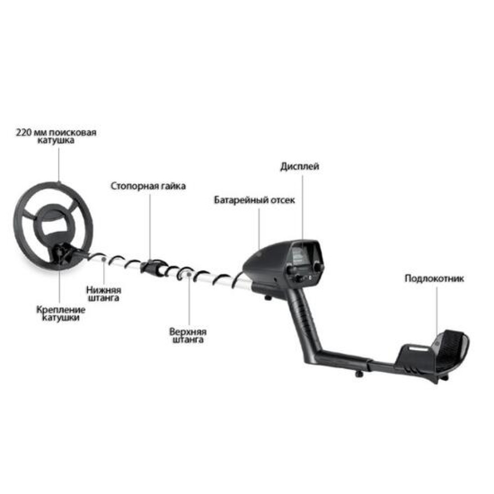 Особенности: - Глубина обнаружения до 90 см (зависит от размера металла) - Регулируемая длина прибора - Водонепроницаемая катушка - Обнаружение всех разновидностей металла - Возможность подключения наушников - Настройка дискриминации - Настройка чувствительности