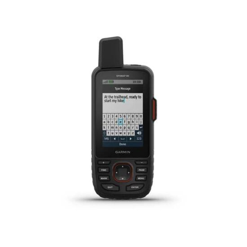 GPSMAP 66i создан для тяжелых походов Прочный GPSMAP 66i с кнопочным управлением имеет большой 3-дюймовый цветной дисплей, который можно увидеть даже при ярком солнечном свете