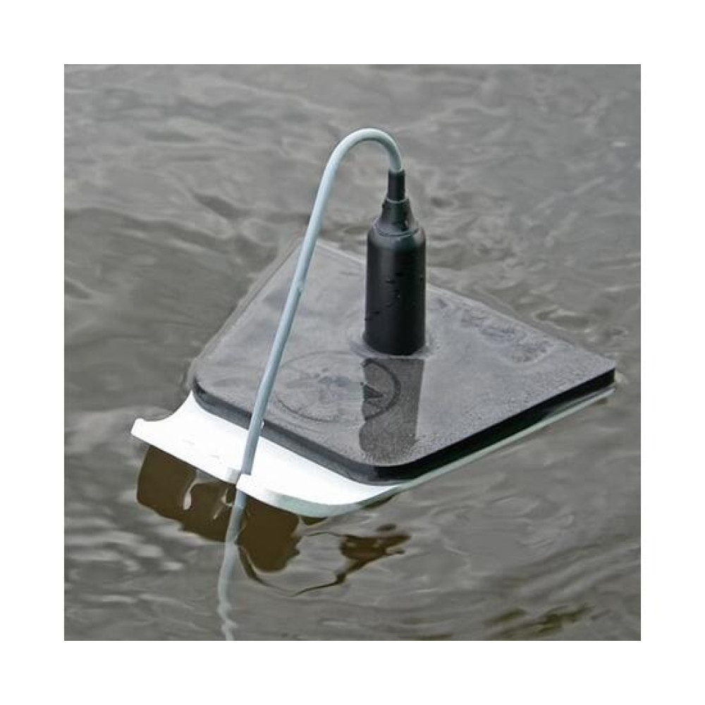Эхолодка с установленным датчиком опускается на поверхность воды за борт плавсредства и буксируется за кабель