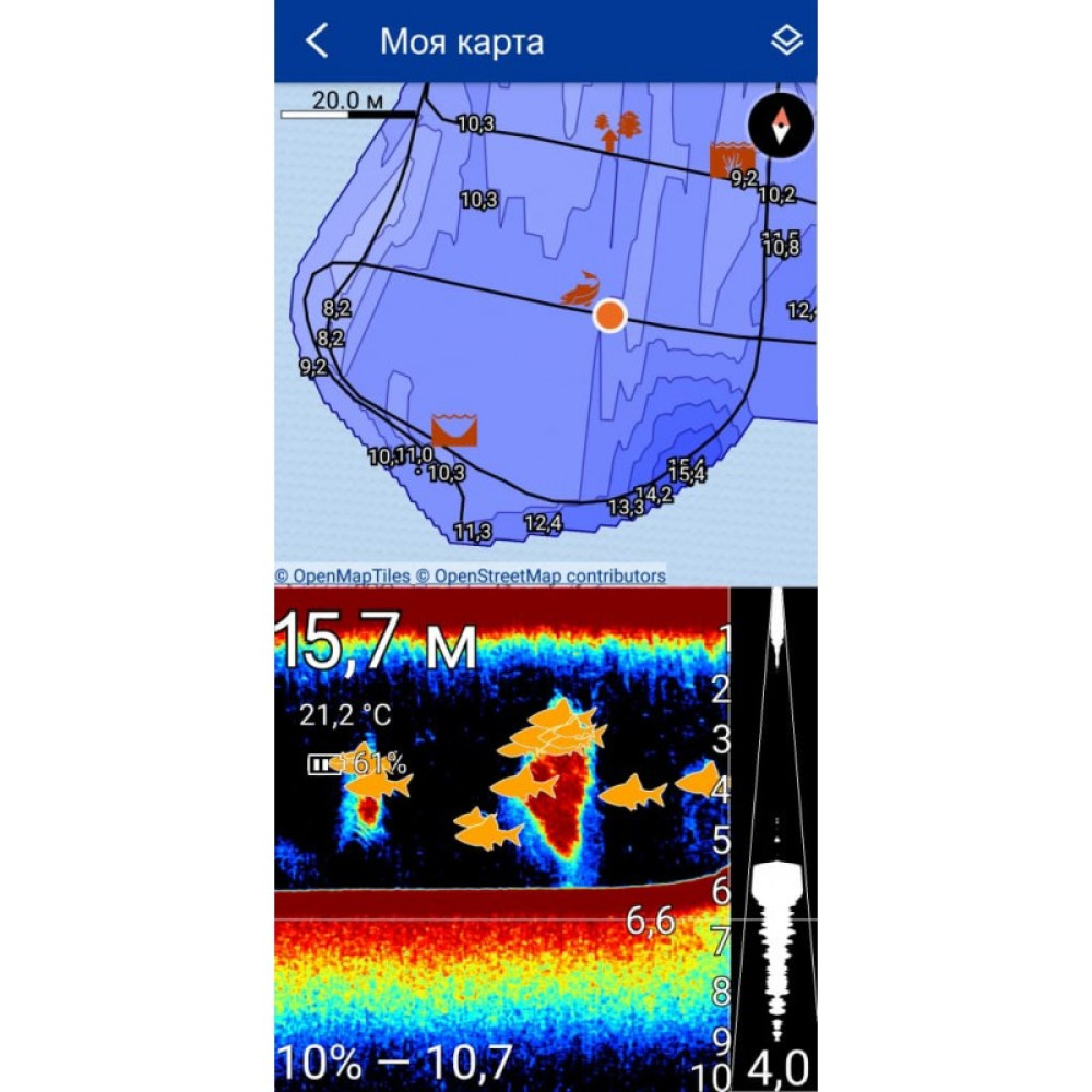 ДОПОЛНИТЕЛЬНАЯ ФУНКЦИЯ ПРИ РАБОТЕ ЭХОЛОТА СО СМАРТФОНОМ/ПЛАНШЕТОМ (КАРТОГРАФИЯ) ПОЗВОЛЯЕТ: