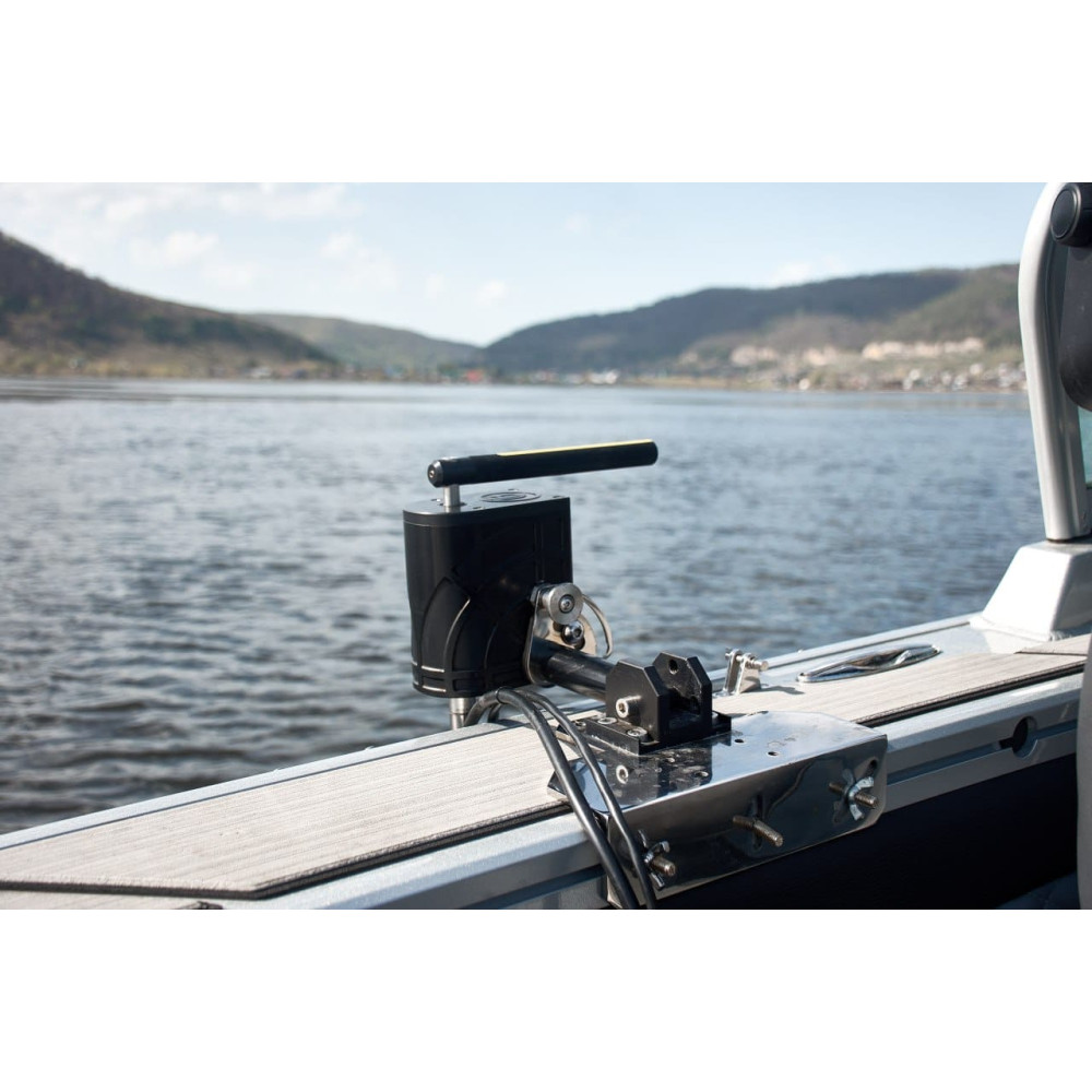 С первого взгляда бросается в глаза его компактный размер, телескопическая штанга, наличие дистанционного пульта-управления, который крепится на бланк удилища, а так же алюминиевое крепление для датчика лайвскопа.