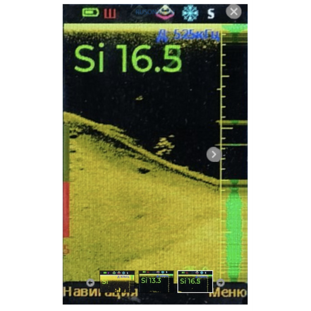 Структурный датчик ЭХОВИЗОР© имеет две рабочие частоты для максимально четкого изображения даже на больших глубинах. Яркие цветовые высококонтрастные палитры создают эффектную картинку с возможностью четкого определения, распознавания объектов и структуры дна.