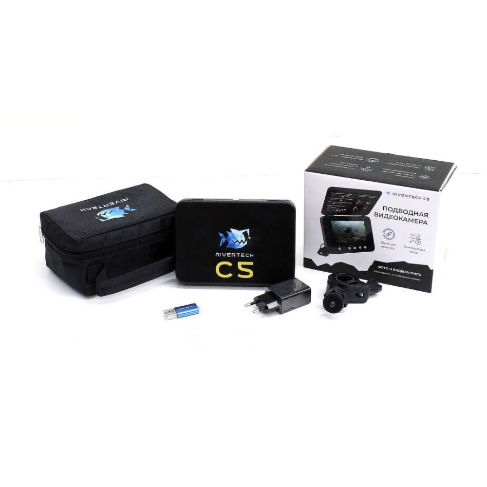 Подводная видеокамера «Rivertech C5» в базовой комплектации это: камера, переносной монитор, сумка-чехол, SD-карта на 8 Гб с адаптером, фиксатор монитора на удочку, фиксатор монитора на руку. И это все, что нужно для начала ее использования!