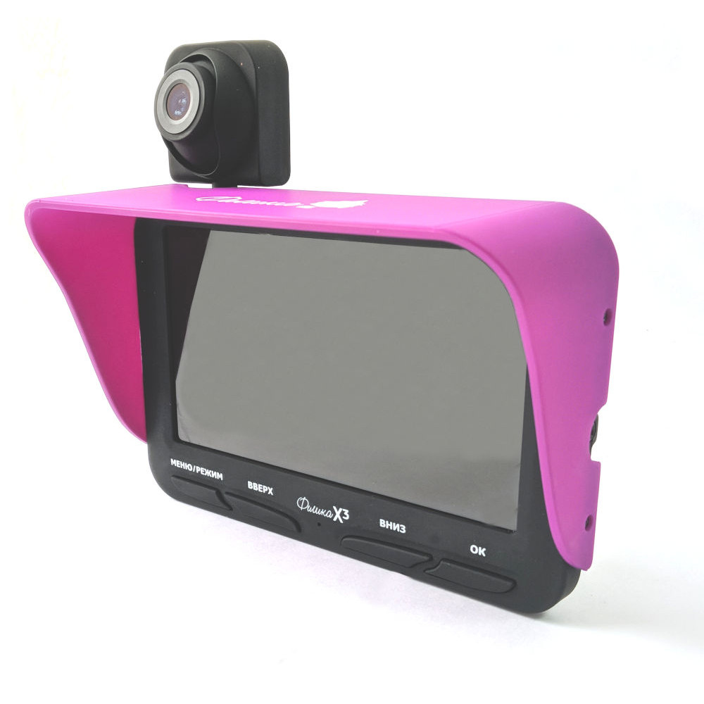 Изображение с обеих камер поступает на ЖК-дисплей размером 4.3” по диагонали и разрешением 800х480. Дисплей рассчитан на всепогодное использование. Он оснащен солнцезащитным козырьком, не боится брызг и одинаково хорошо читается и в пасмурную погоду, и на ярком солнце. Кроме того, Фишка Х3 позволит вам не только понаблюдать за тем, что показывают камеры на дисплее, но и записать видео или фото на карту памяти емкостью до 32 Гб. Для этого предусмотрен встроенный встроен слот для карт формата microSD.