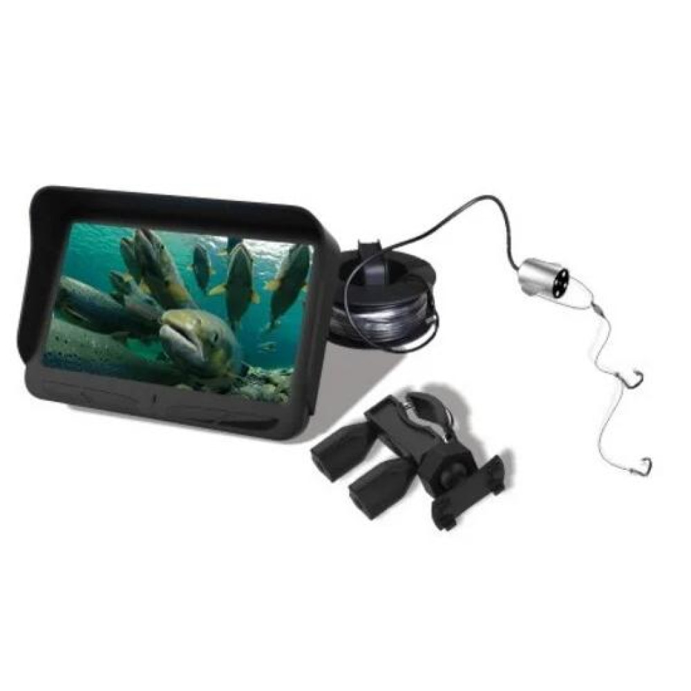 Комплектация: подводная видео камер 20 метров кабель зарядные устройства от сети 220 В специальный бокс разборная стойка для крепления камеры инструкция на русском.