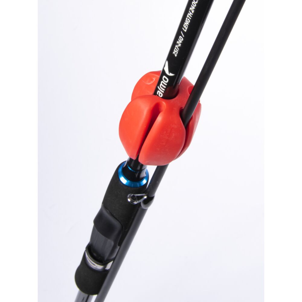 Стяжка используется в качестве крепления нескольких частей удилищ, которые не будут соприкасаться друг с другом, чтобы не нанести царапины и другие повреждения во время переноски. Также она служит дополнительным бампером при транспортировке.
