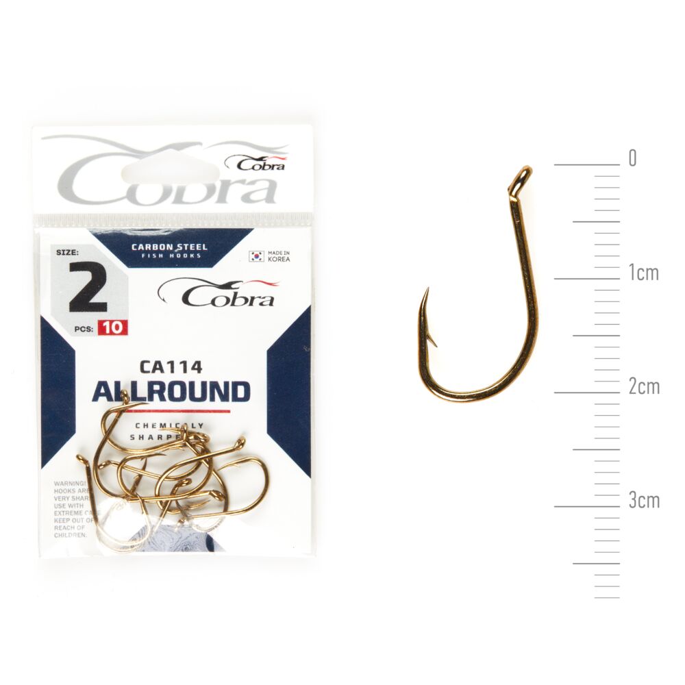 Бренд Cobra представляет серию крючков Allround. Серия крючков имеет среднее по размеру цевье и удлиненное жало с бородкой. Эти детали формы делают эти крючки универсальными в использовании. Особо актуально их использование при подборе крючка для ловли на незнакомом водоеме. Ими можно ловить практически на всех водоемах, со всеми типами насадок и по всем видам рыб. Главное - правильно подобрать размер крючка под условия ловли и ожидаемую рыбу. Представленный в серии широкий размерный ряд позволит осуществить этот процесс без проблем.