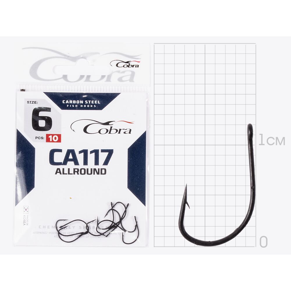 Бренд Cobra представляет серию крючков Allround. Серия крючков имеет среднее по размеру цевье и удлиненное жало с бородкой. Эти детали формы делают эти крючки универсальными в использовании. Особо актуально их использование при подборе крючка для ловли на незнакомом водоеме. Ими можно ловить практически на всех водоемах, со всеми типами насадок и по всем видам рыб. Главное - правильно подобрать размер крючка под условия ловли и ожидаемую рыбу. Представленный в серии широкий размерный ряд позволит осуществить этот процесс без проблем.