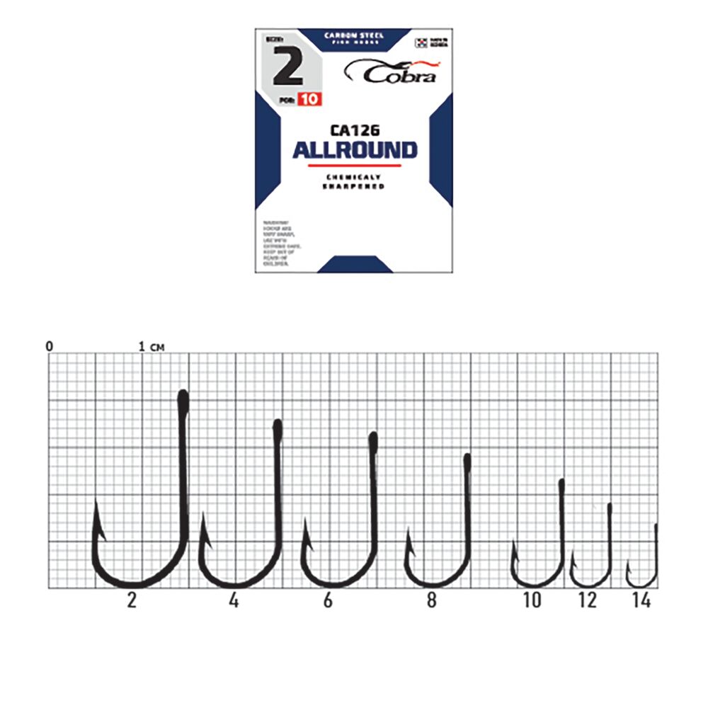 Бренд Cobra представляет серию крючков Allround. Серия крючков имеет среднее по размеру цевье и удлиненное жало с бородкой. Эти детали формы делают эти крючки универсальными в использовании. Особо актуально их использование при подборе крючка для ловли на незнакомом водоеме. Ими можно ловить практически на всех водоемах, со всеми типами насадок и по всем видам рыб. Главное - правильно подобрать размер крючка под условия ловли и ожидаемую рыбу. Представленный в серии широкий размерный ряд позволит осуществить этот процесс без проблем.