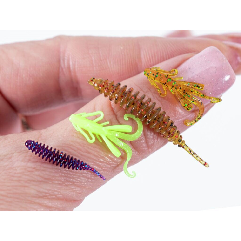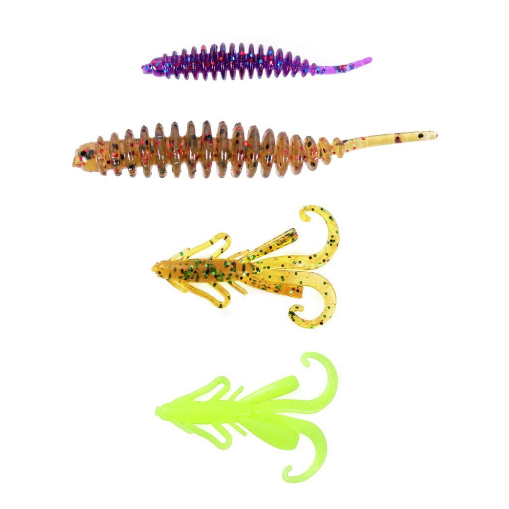Набор состоит из 72 приманок, в который входят слаги Ultra Worm 1" - 20шт., слаги Ultra Worm 1.4" - 12шт., нимфы Hogy Hog 0.8" - по 20шт. в двух расцветках.