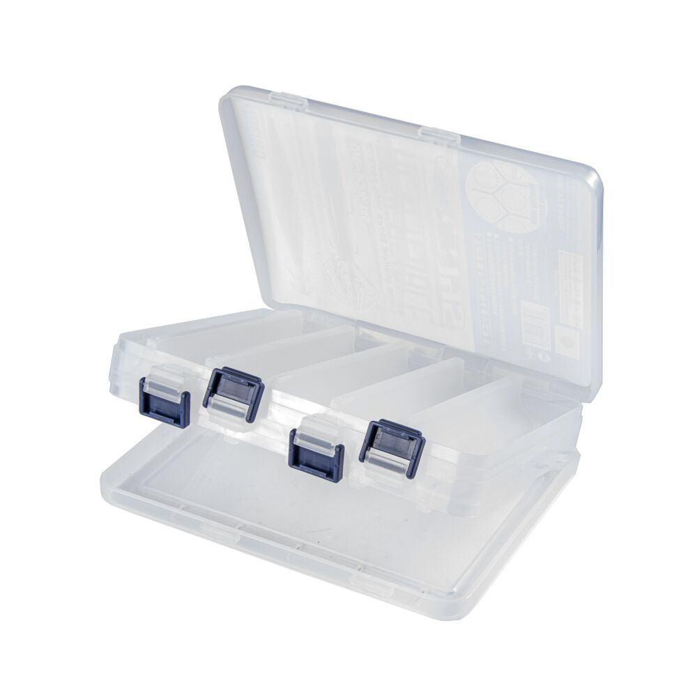В остальном, как и все коробки Meiho Reversible, эта модель изготовлена в Японии из высококачественного первичного пластика, продумана конструктивно, имеет надежные застежки и долговечные петли. Кроме этого предусмотрена дополнительная защита Ваших приманок от коррозии – сквозные отверстия в каждом отсеке, предотвращающие скопление влаги внутри них и работающие как «дренаж» после неприятного «купания» всей коробки в воде.