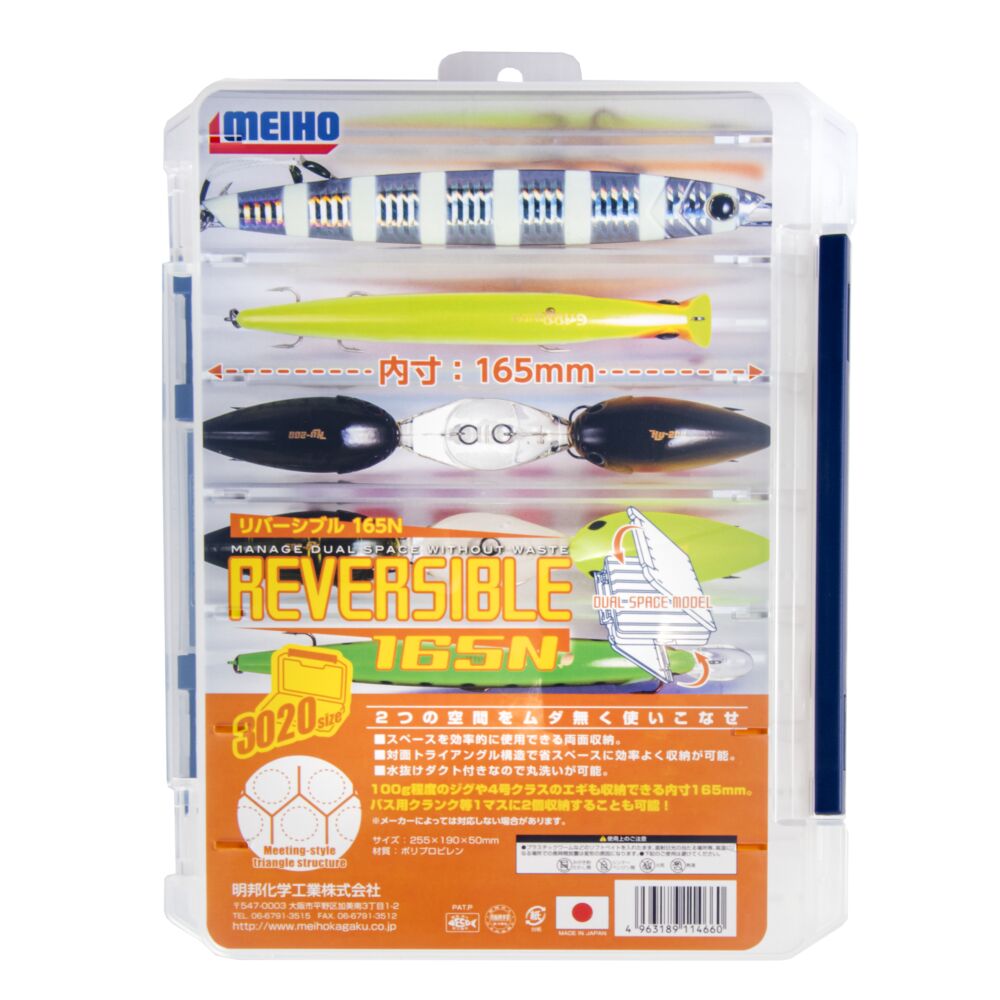 Специальное расположение отсеков треугольной формы коробок серии Reversible позволяет наиболее эффективно использовать их внутреннее пространство, исключая при этом контакты приманок и крючков между собой, тем самым сохраняя лакокрасочное покрытие приманок при транспортировке.