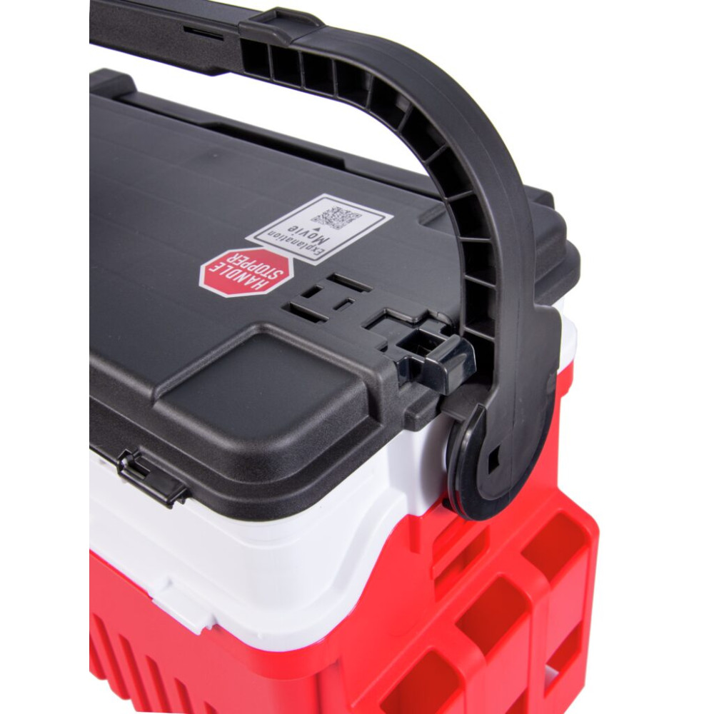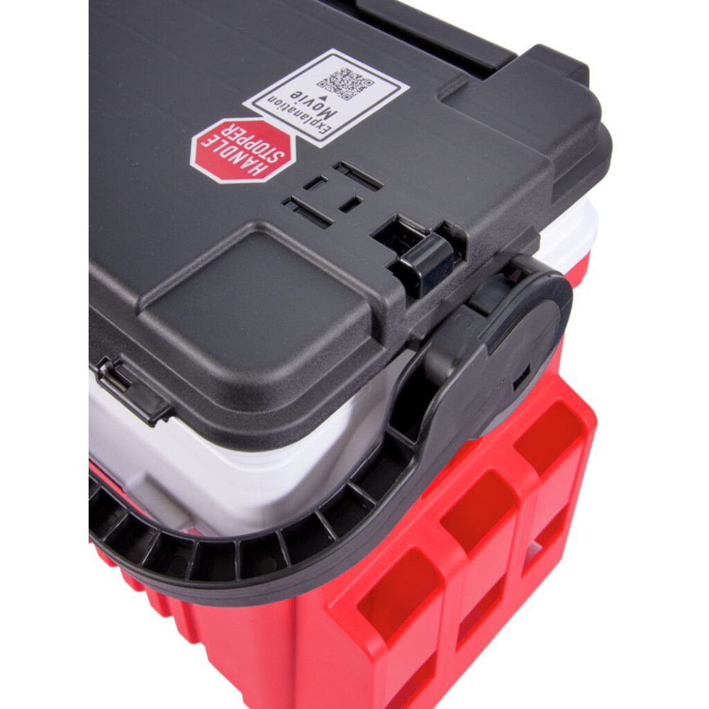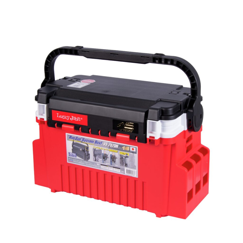 Основной фишкой ящика является ручка особой конструкции, на которую возложено сразу три функции. Она служит для переноски и фиксации крышки в закрытом положении. Помимо этого, ручка обеспечивает опору для откинутой крышки, превращая ее в удобный столик. А если Вы приобретете дополнительный обвес и стаканы-держатели для удилищ, то откроете дополнительные возможности этого детища японских экспертов. В комплект входят противоскользящие накладки на ножки.