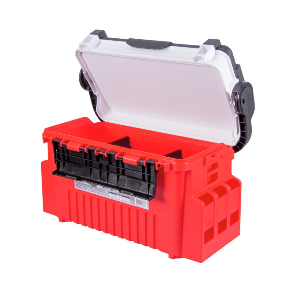 Крышка фиксируется надежной защелой, которая не может открыться случайно, но рыболов получает доступ к содержимому емкости буквально одним движением руки.