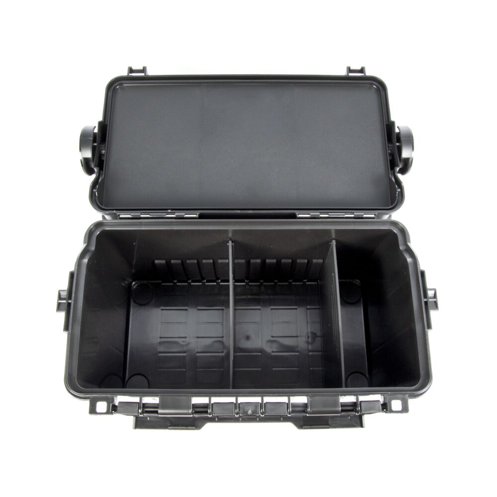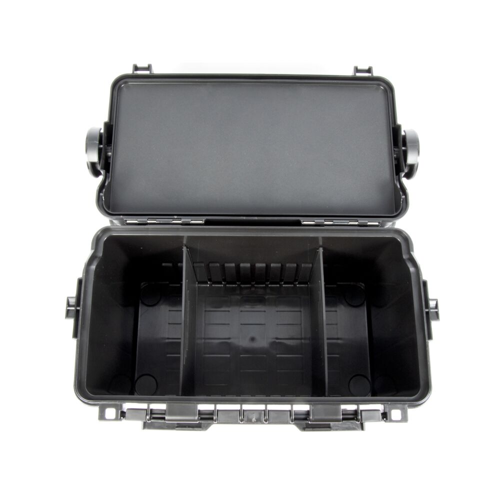 Нижний отсек ящика более объемный. Там можно хранить запасные катушки, коробки с приманками, одежду, напитки, еду – словом, все, что может понадобиться любящему комфорт рыболову. Крышка фиксируется надежной защелой, которая не может открыться случайно, но рыболов получает доступ к содержимому емкости буквально одним движением руки.