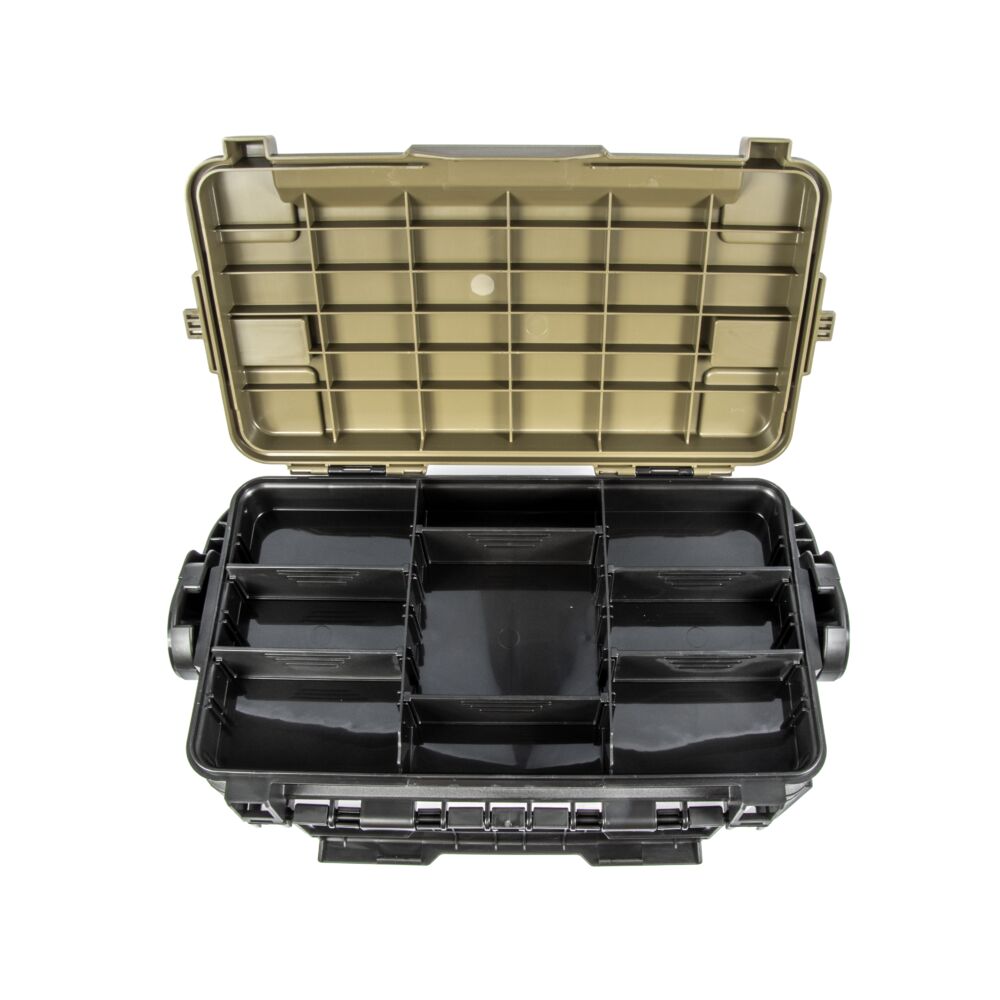 В остальном ящик Meiho VS-7070N остался все тем же гимном комфорту и вниманию к деталям. Под удобной крышкой находится поддон с перегородками, предназначенный для хранения приманок и оснасток. Перегородки можно перемещать по своему разумению, чтобы оптимально организовать пространство.