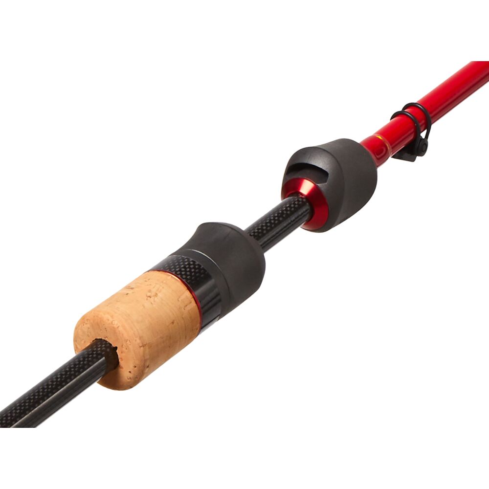 Спиннинг изготовлен из высокомодульного графита T40, оснащён эргономичной разнесённой рукоятью и антизахлёстными кольцами FUJI KR-Guide со вставками SIC.
