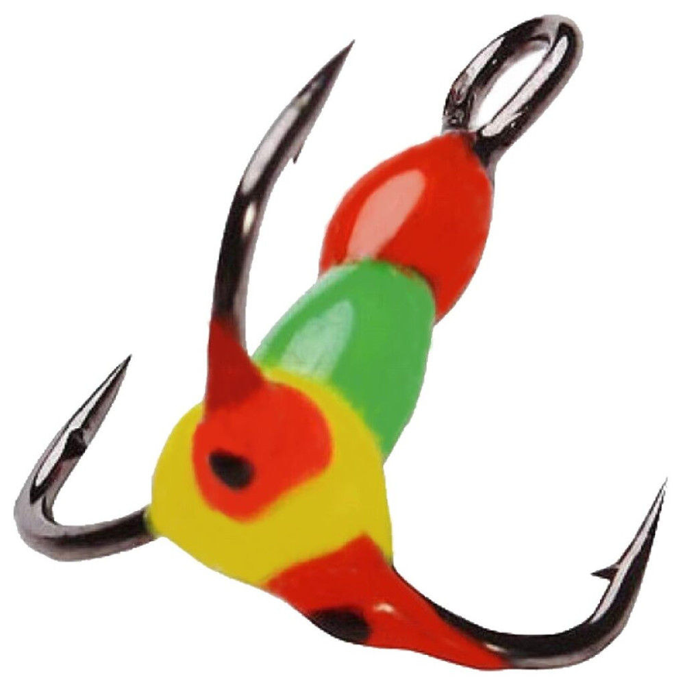 Размеры тройников от №6 до №18, в ассортименте имеются различные окраски, в том числе и со светонакопителем, привлекательным для судака.