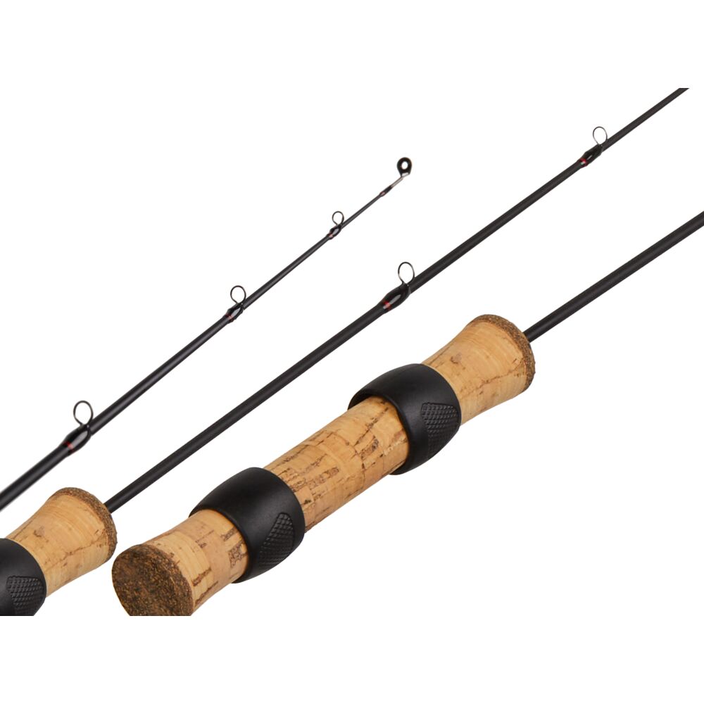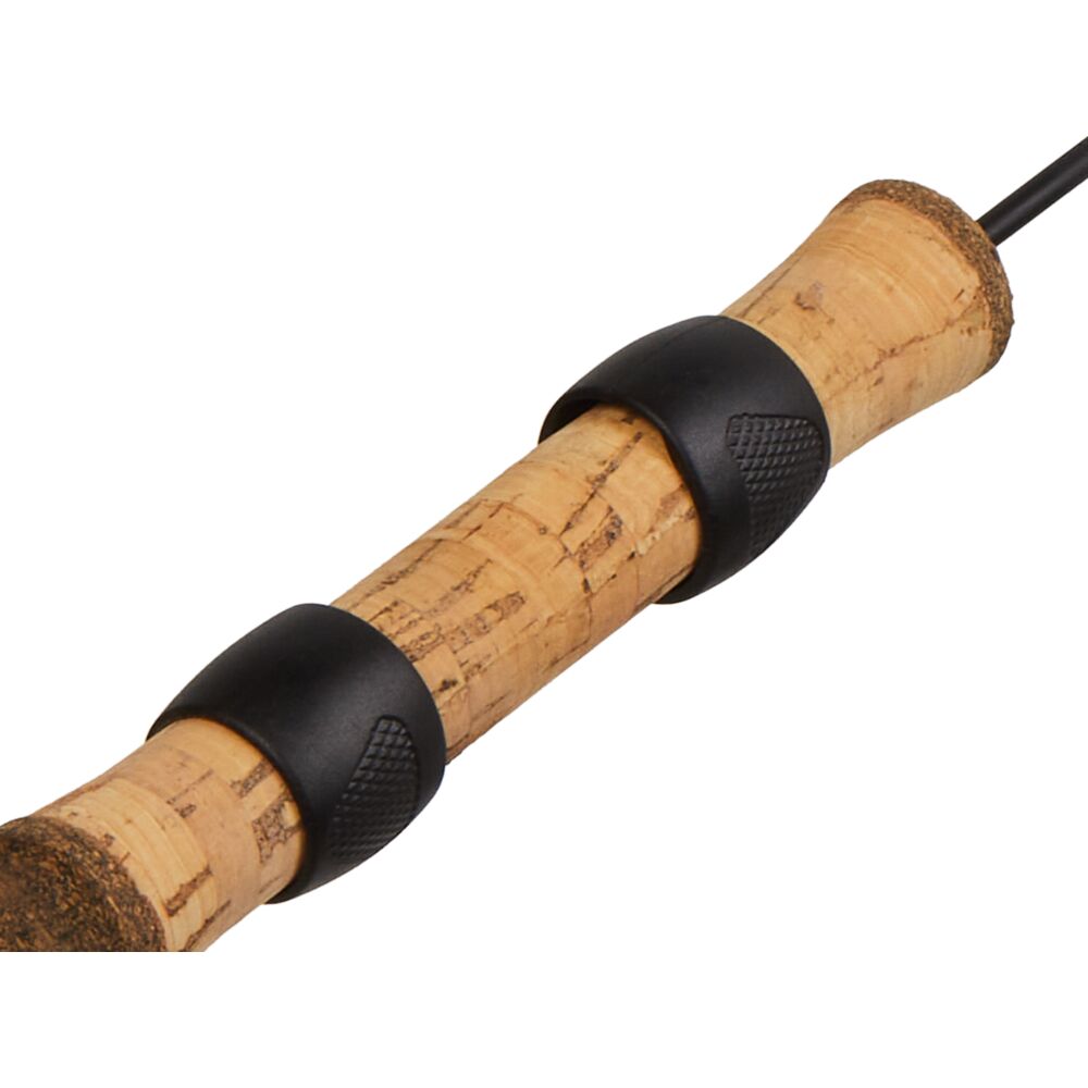 Высококачественный графит хлыстика, с вершинкой Solid Tip, не теряет своих свойств на морозе и выдерживает большие нагрузки при подсечке и вываживании крупной рыбы. Рукоятка удочки изготовлена из португальской пробки класса AAA. Катушка может крепиться в любом месте рукоятки за счет подвижного крепления из специального графита. Облегченные пропускные кольца изготовлены из нержавеющей стали, а тюльпан SIC защищает леску от повреждения при неожиданной поклёвке крупной рыбы.