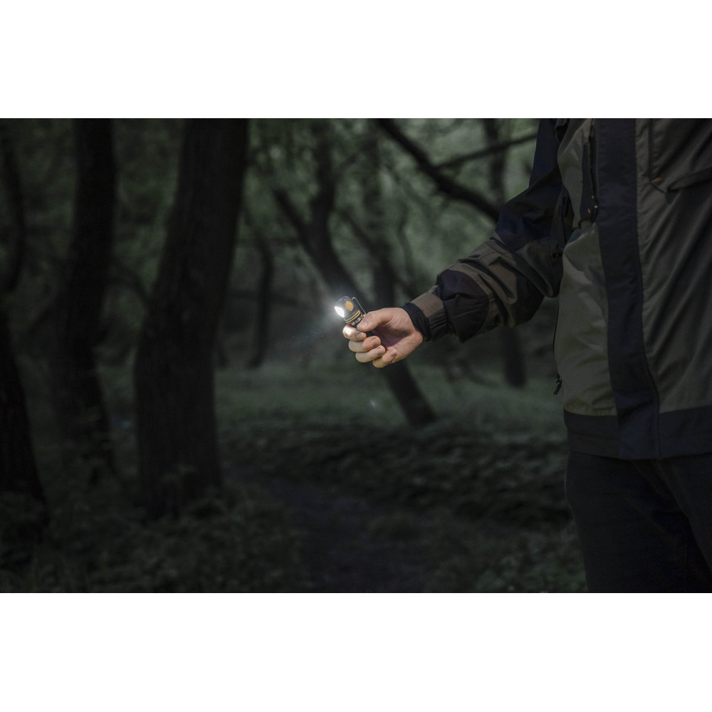 Благодаря встроенному магниту, а также стальной клипсе и налобному креплению в комплекте, фонарь можно фиксировать на голове, одежде или на металлических поверхностях. Elf C2 также совместим с опциональными аксессуарами: с велокреплением ABM-01 для велопрогулок и с креплениями на каску серии AHM для индустриальных работ и альпинизма.
