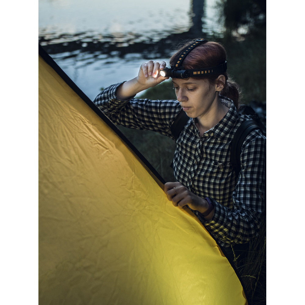Удобное налобное крепление с двумя мягкими эластичными лентами, легким держателем из композитного материала и силиконовым кольцом для дополнительной фиксации. Ленты надежно фиксируют фонарь, не натирают кожу и не оставляют следов. Фонарь устанавливается одним движением, размер налобного крепления регулируется.