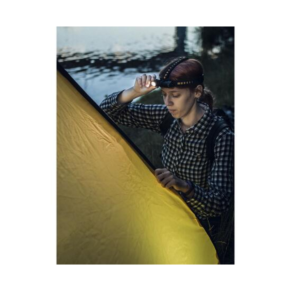 ПРОДУМАННЫЙ КОМПЛЕКТ АКСЕССУАРОВ Налобное крепление Удобное налобное крепление с двумя мягкими эластичными лентами, легким держателем из композитного материала и силиконовым кольцом для дополнительной фиксации
