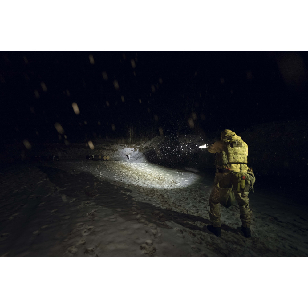 Белый свет с впечатляющей для данных габаритов яркостью в 1500 люмен и дальностью в 350 метров позволяет эффективно выполнять стандартные задачи в условиях недостаточной видимости.