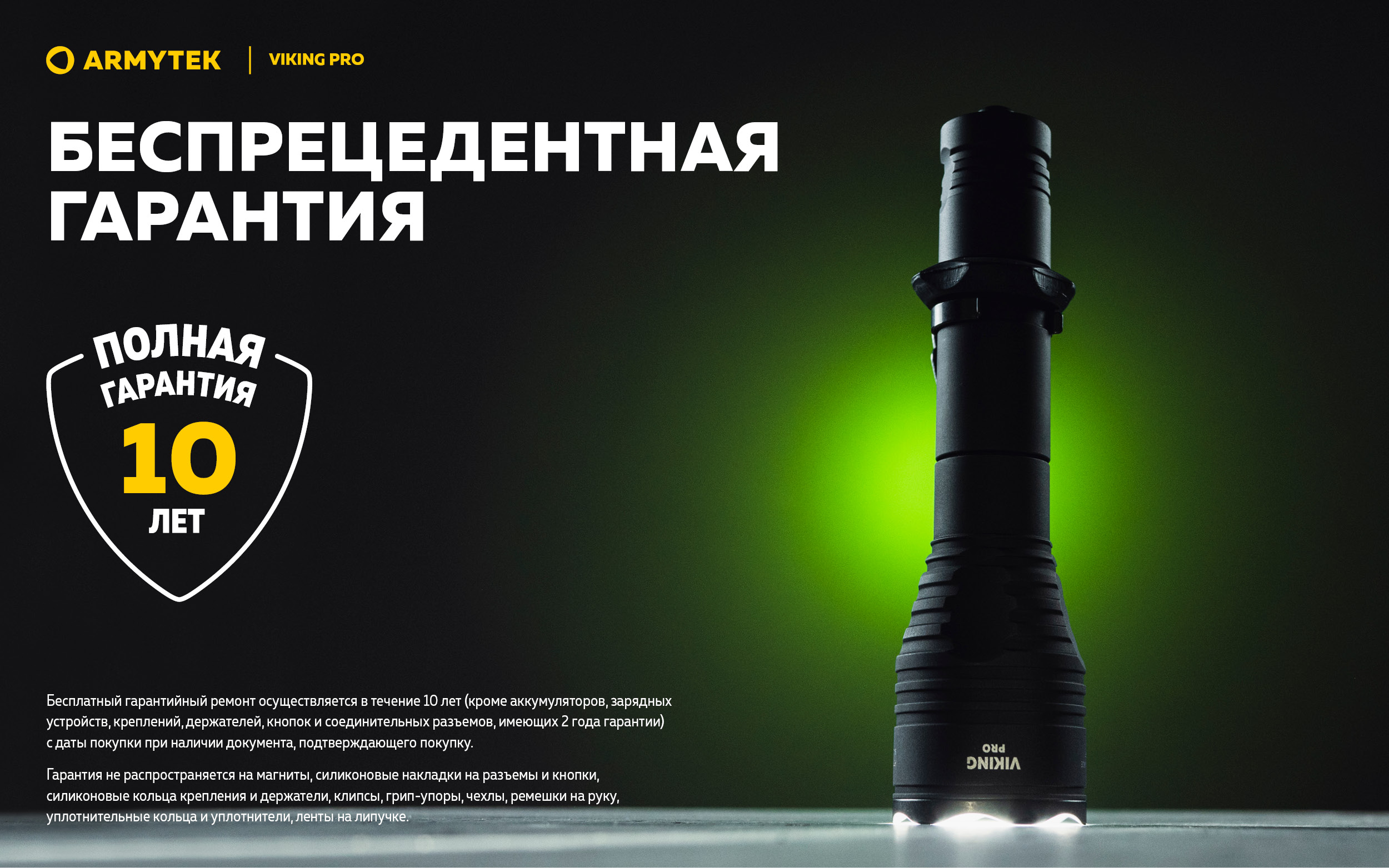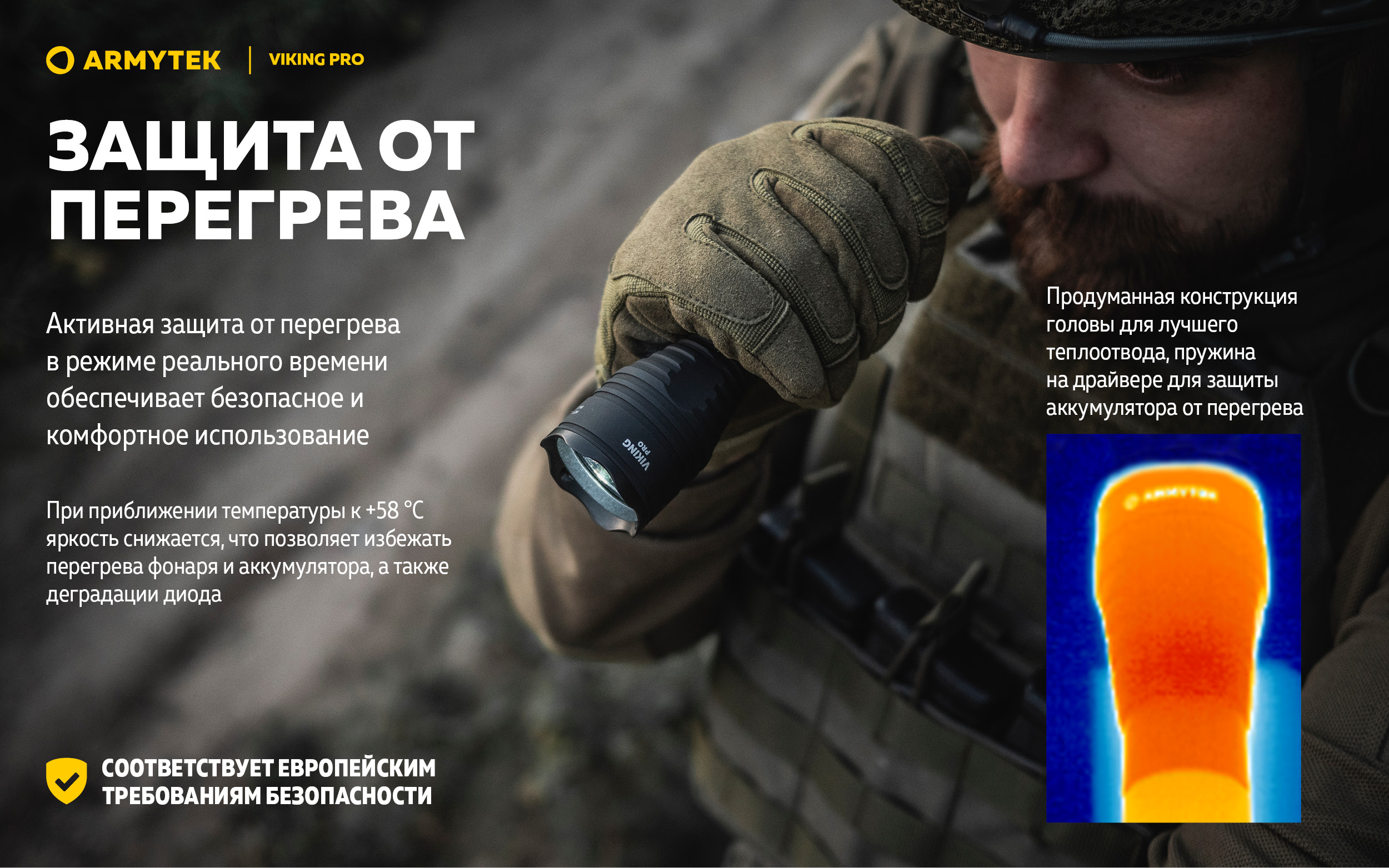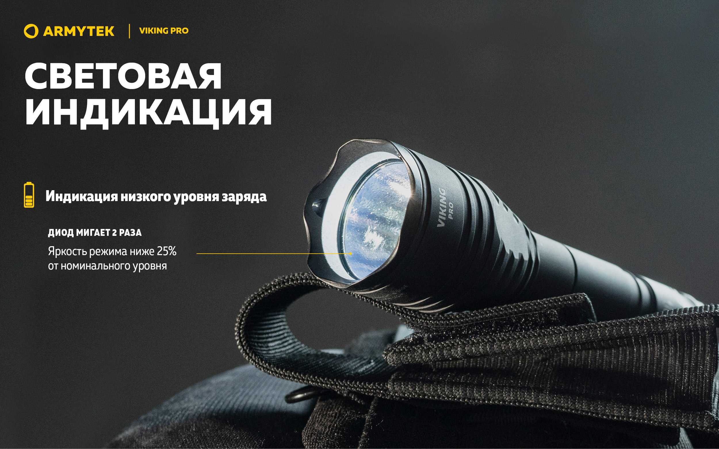 Благодаря силиконовому грип-упору и тактической кнопке в задней крышке Viking Pro удобно использовать одной рукой. Модель совместима с оригинальными цветными фильтрами и выносными кнопками, а также с любыми универсальными подствольными креплениями.