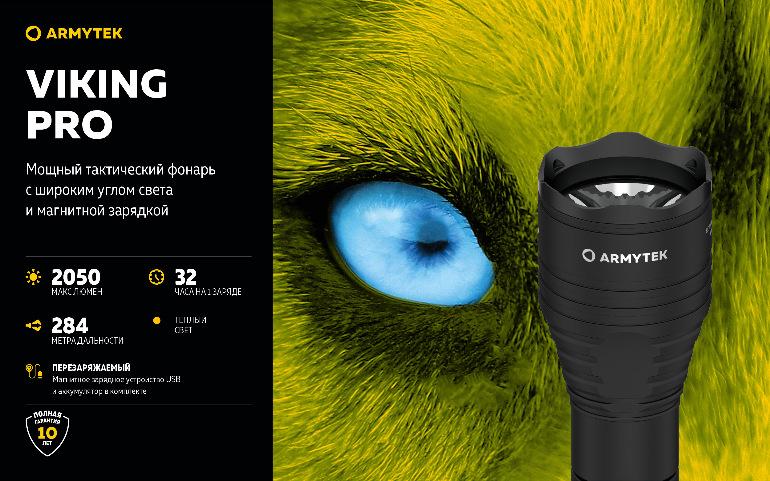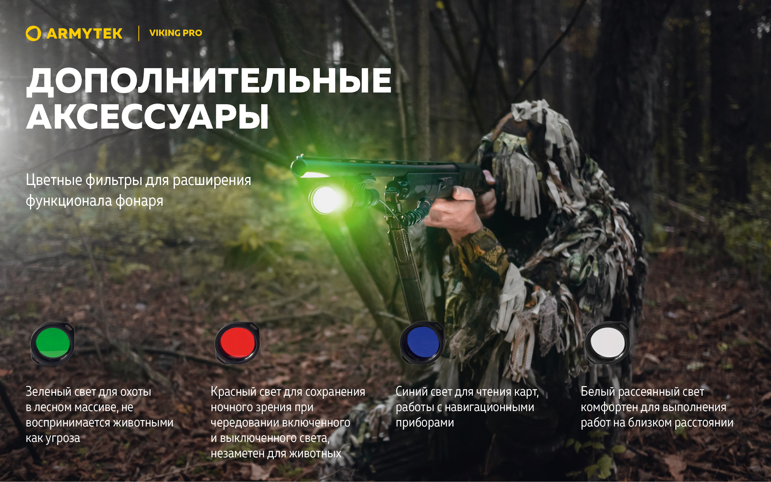Viking Pro — это тактическая модель нового поколения с мягким широким светом для охоты на открытой местности и специализированных задач. Фонарь можно использовать сразу из коробки: в комплект теперь входят аккумулятор высокой емкости и быстрая магнитная зарядка.