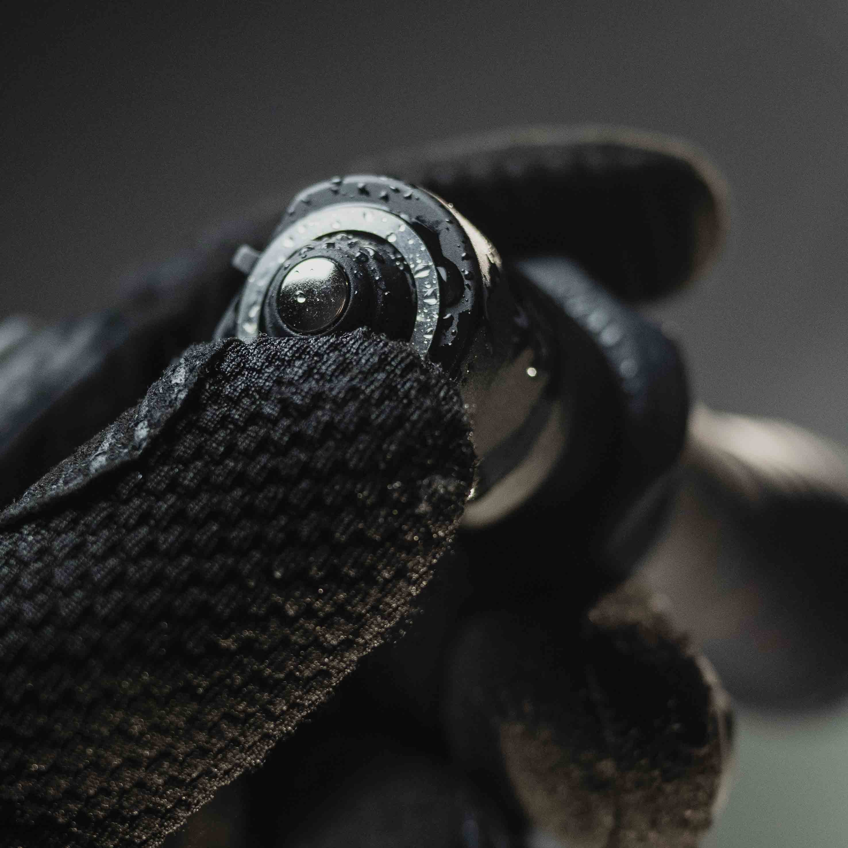 - Стальная ударная кромка с черным матовым небликующим титановым покрытием, исключающим демаскировку, используется для дополнительной защиты оптической системы при падении и в качестве ударно-дробящего средства.