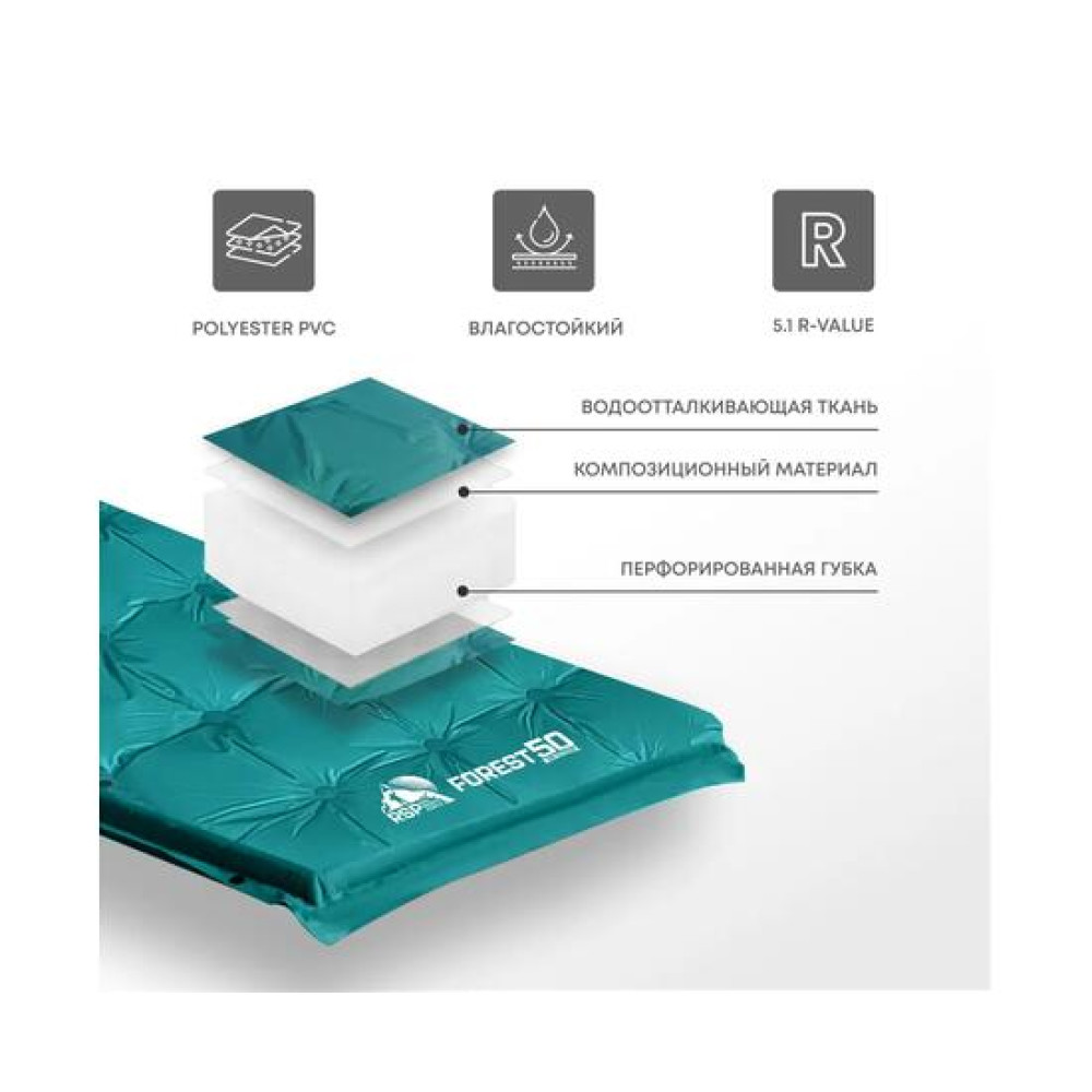 Коврик туристический RSP Forest 50, зеленый - это отличный выбор для тех, кто ценит функциональность и практичность во время активного отдыха на природе.