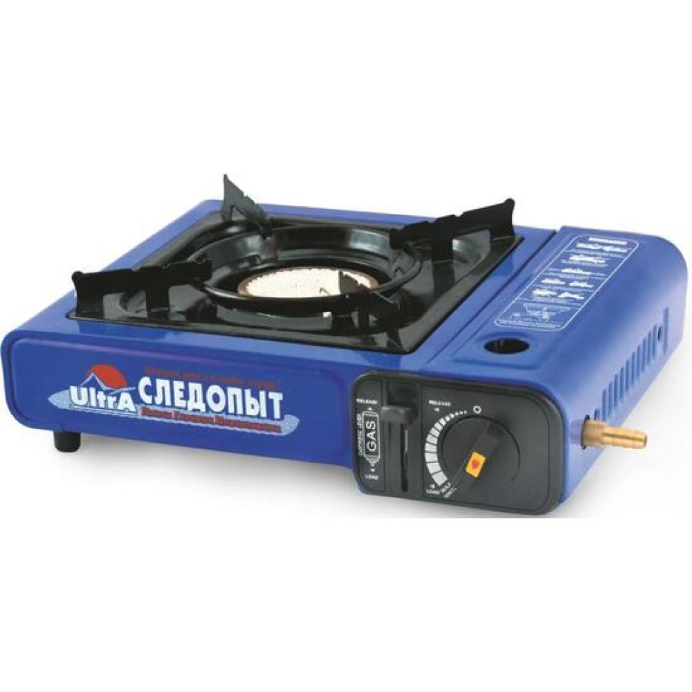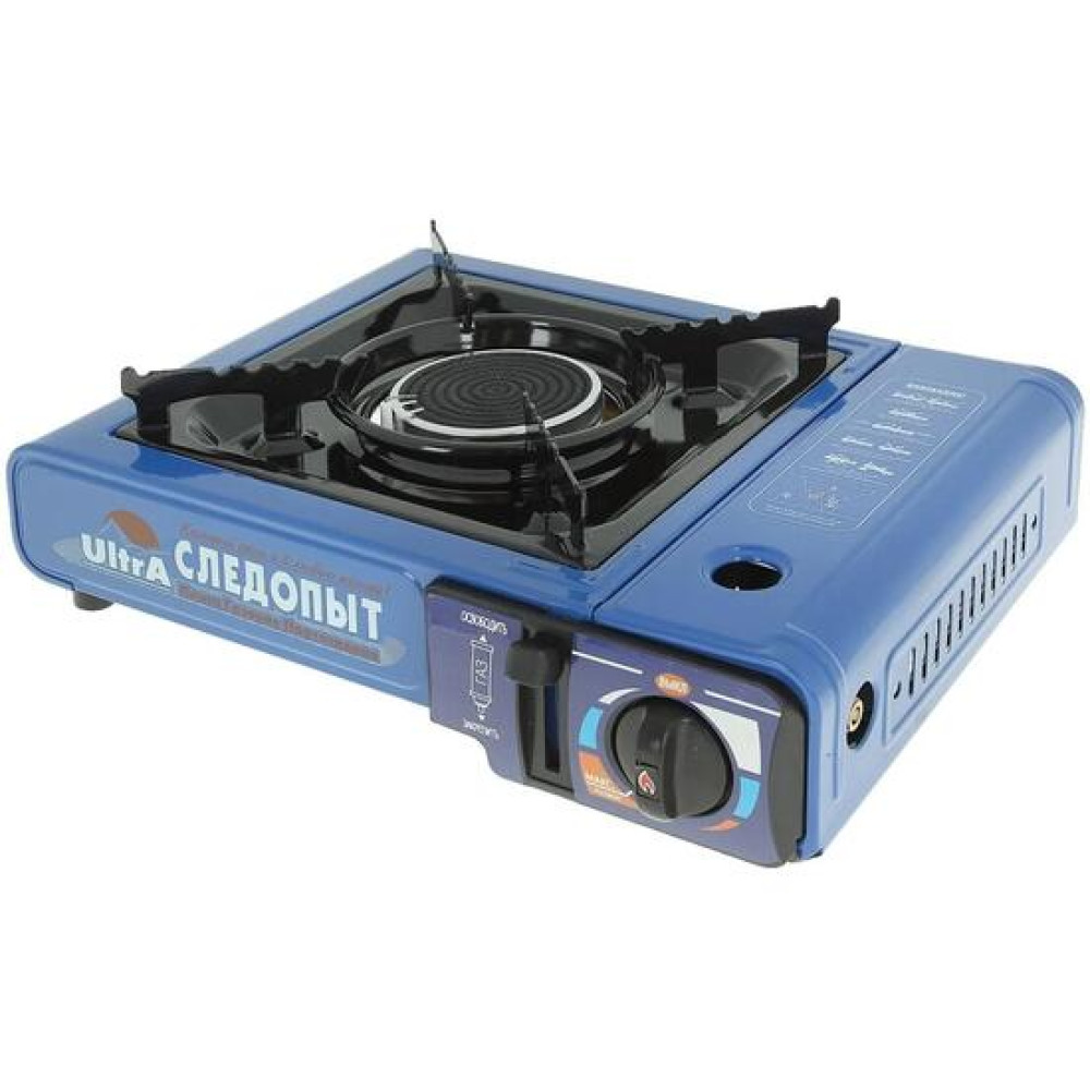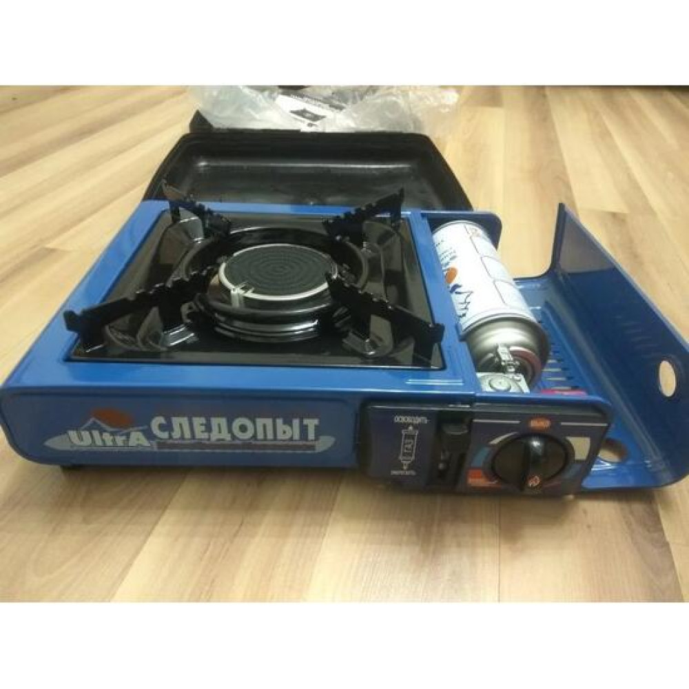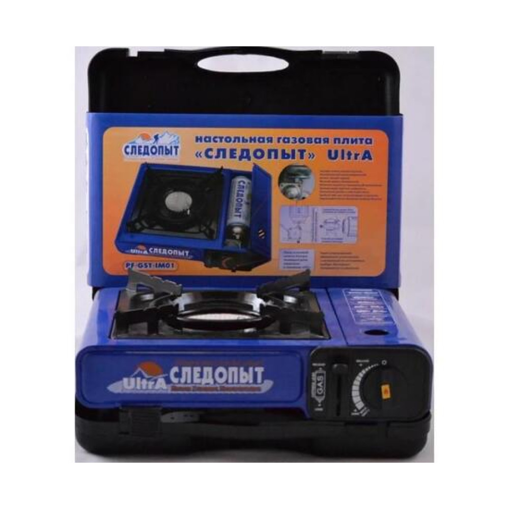 Плита оборудована системой пьезоэлектрического розжига горелки и блоком управления подачей газа, а на время хранения и транспортировки размещается в пластиковом кейсе