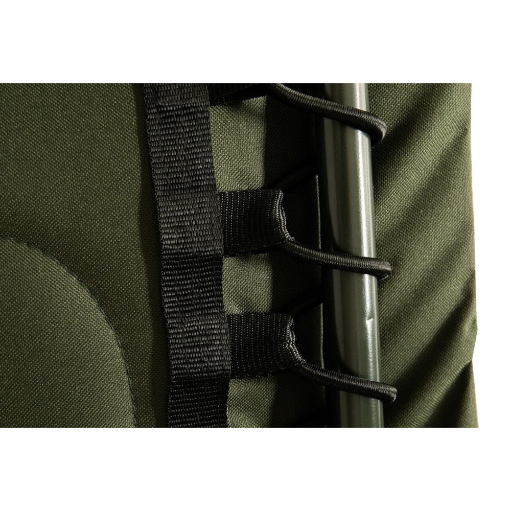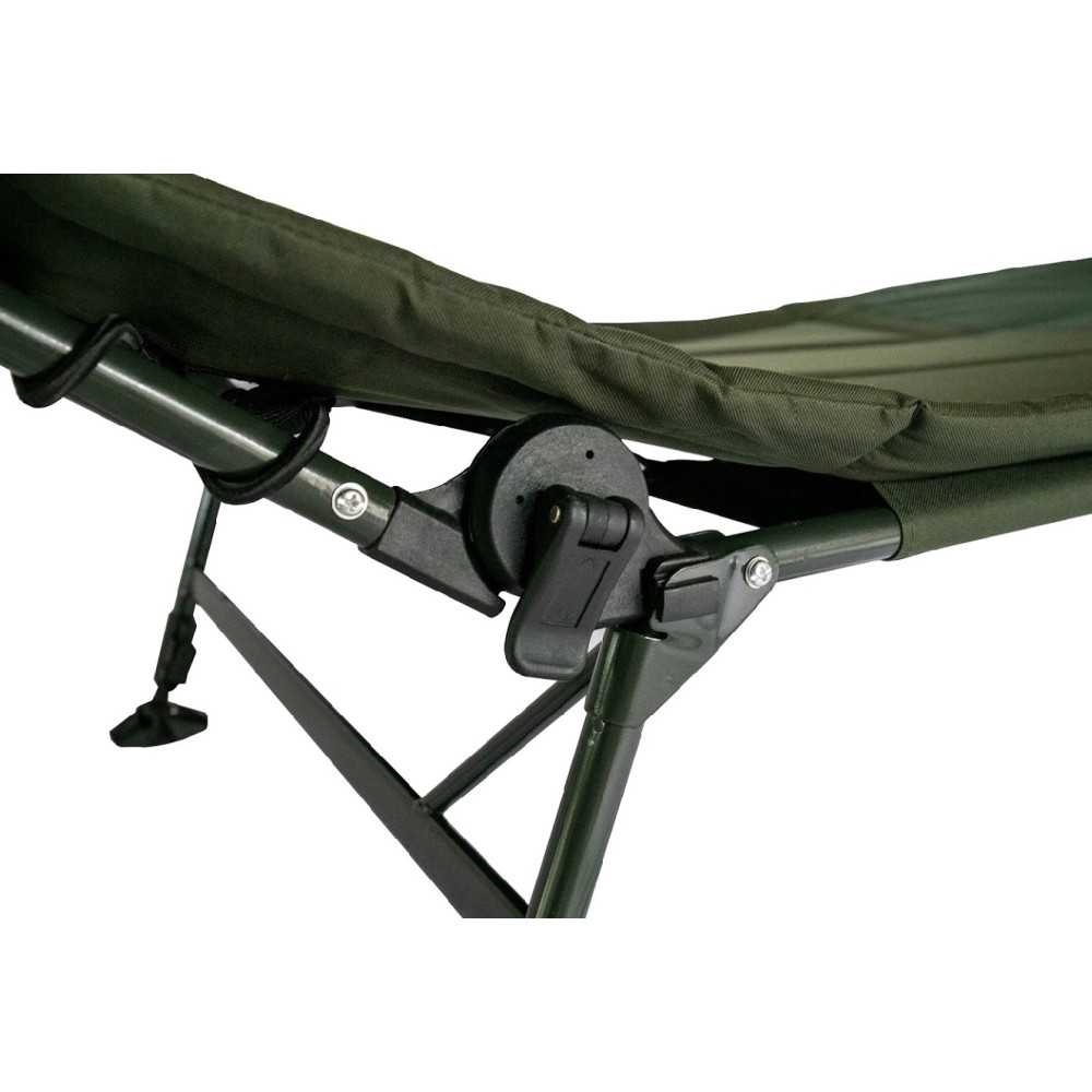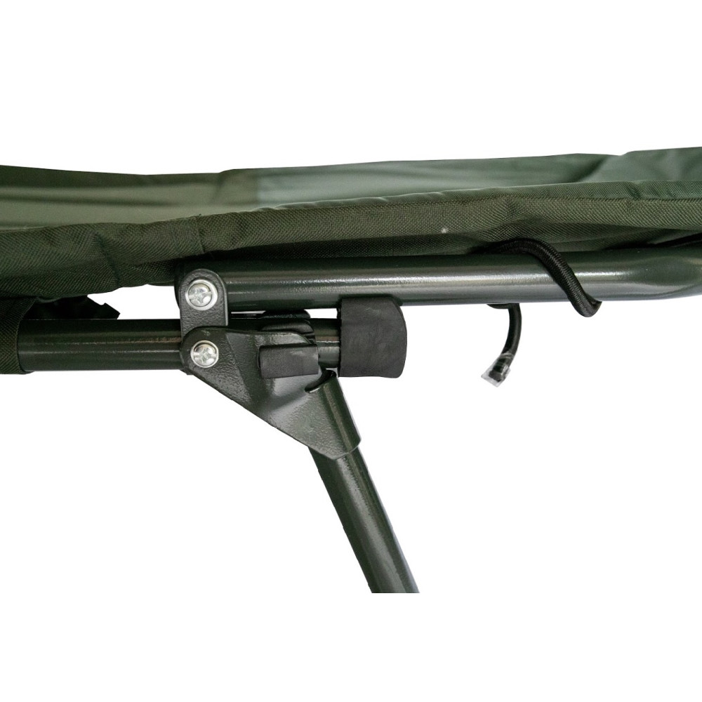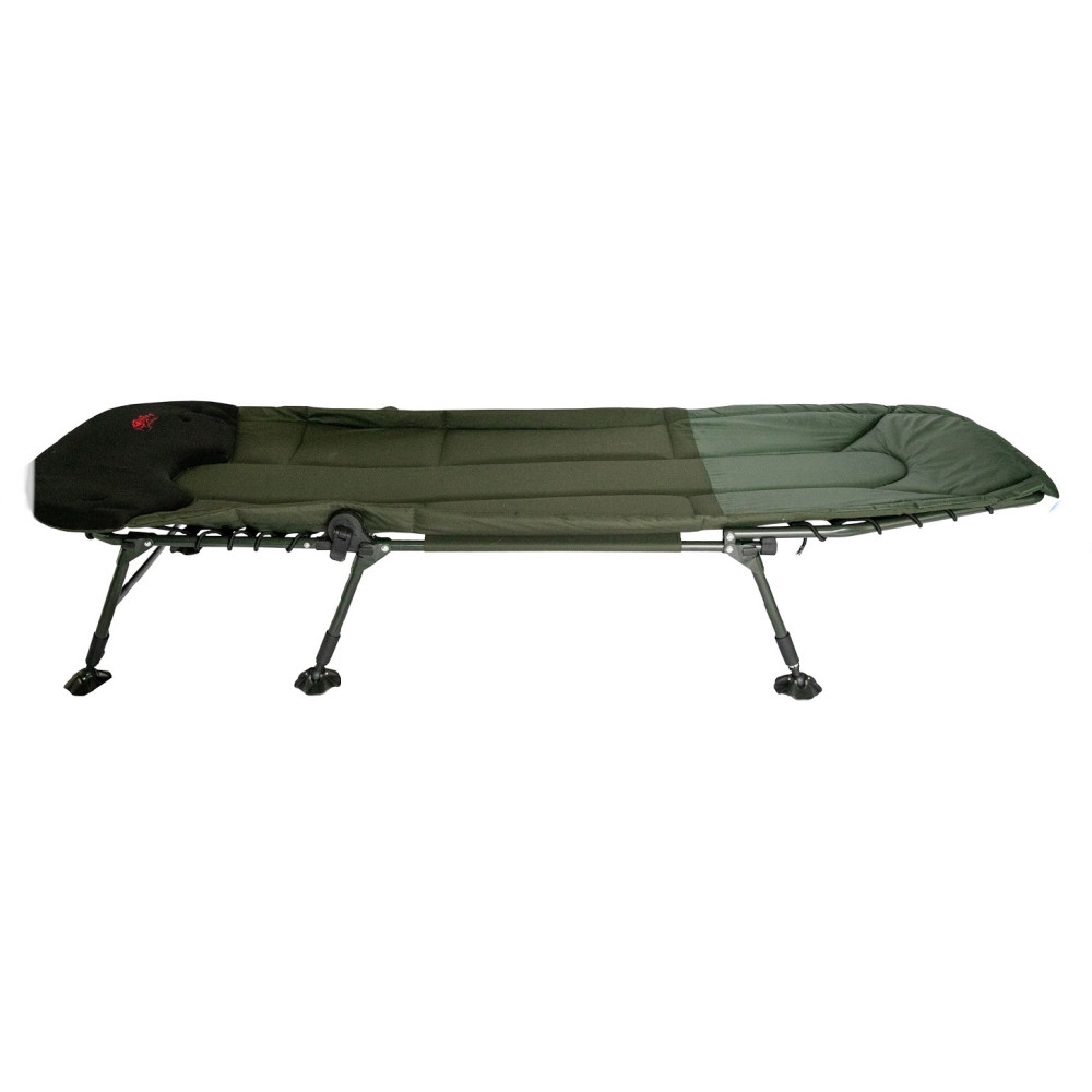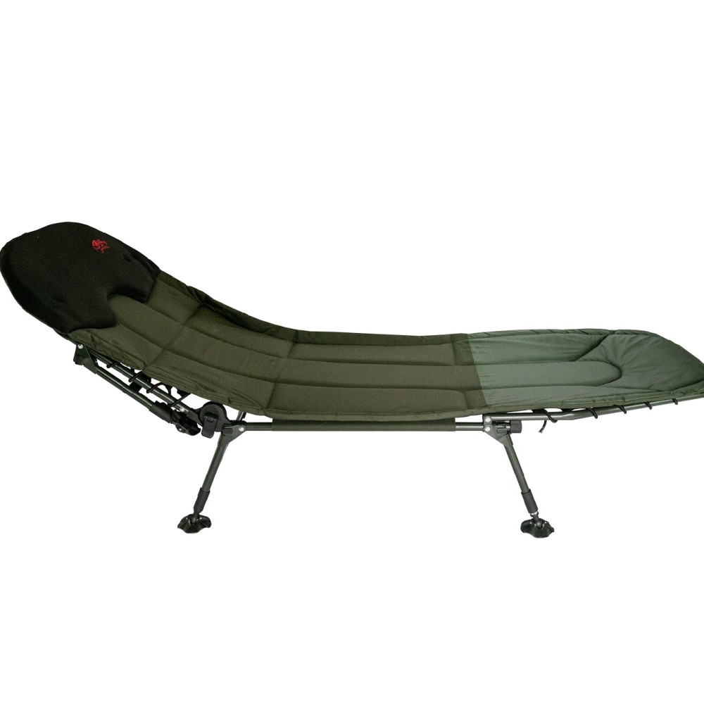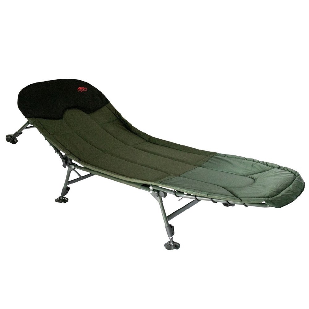 Простая в использовании и очень надежная (благодаря стальному каркасу) карповая раскладушка, способная выдержать нагрузку до 150 кг.Благодаря регулируемому наклону спинки модель может использоваться и как карповая кровать, и как рыбацкое кресло одновременно.