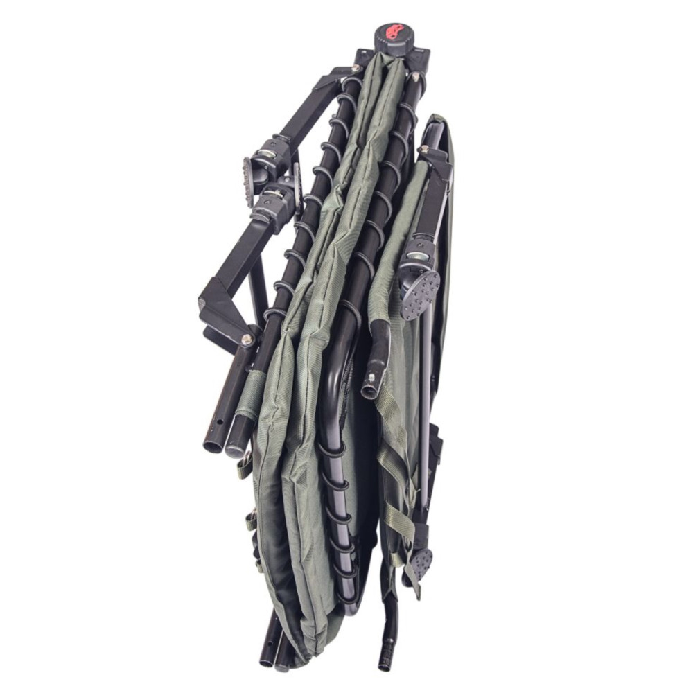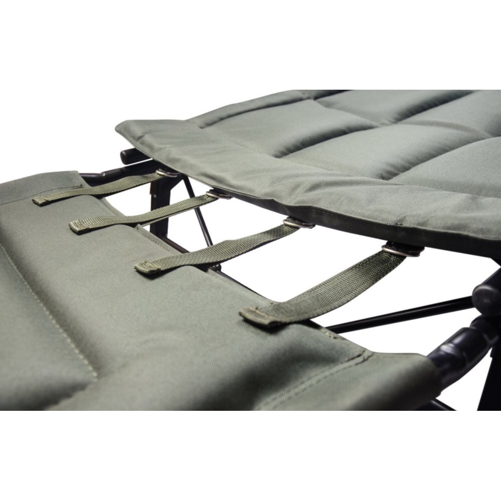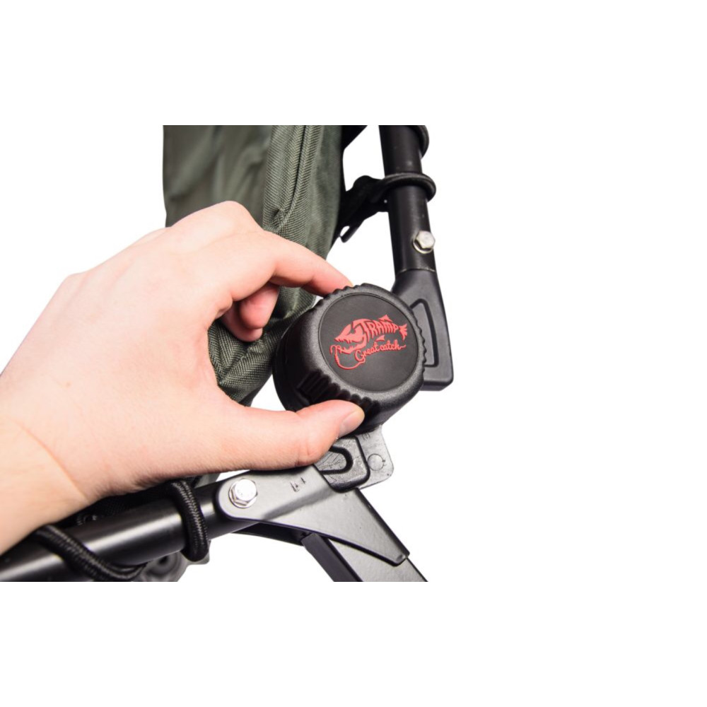 Кресло Tramp Lounge трансформер при помощи подсоединения дополнительного сегмента трансформируется в раскладушку. Вы можете весь день ловить рыбу из комфортного сиденья с широкой спинкой, а перед сном легко подсоединить к нему дополнительный модуль и с комфортом провести ночь на большой удобной раскладушке. Модель собрана на традионно прочной стальной раме, выдерживающей вес до 120 кг. Угол наклона широкой и высокой спинки можно просто отрегулировать.