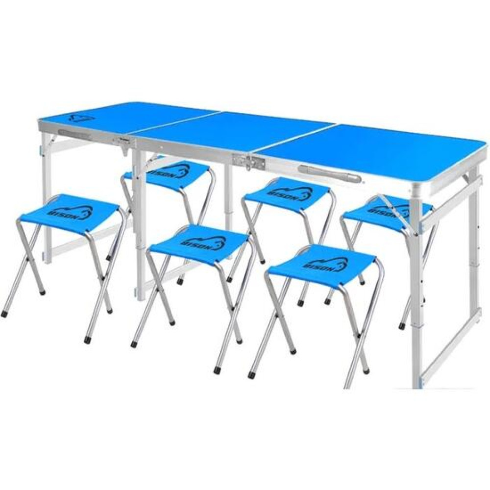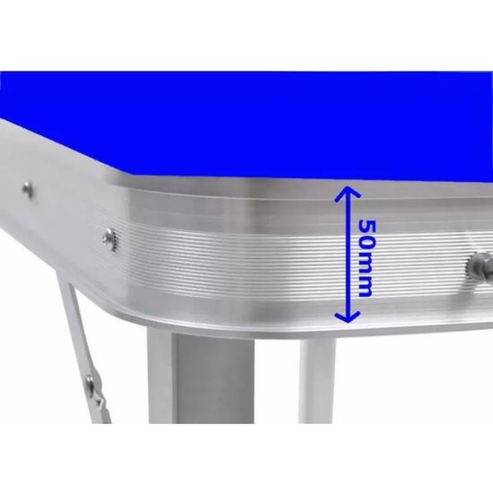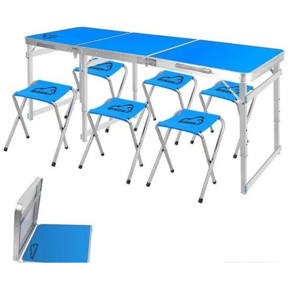 Комплектация: 1 х Стол для пикника раскладной (цвет столешницы: синий) 6 х Складной стул (цвет стульев: синий) Дополнительные характеристики: Размер стола в сложенном состоянии - 60х60х15,5 см; Размер стола в разложенном состоянии - 180х60 см; Толщина каркаса столешницы: 5см Диаметр трубы стульев: 18мм Габариты (вес) с упаковкой: 64 х 62 х 20см (10.5кг)