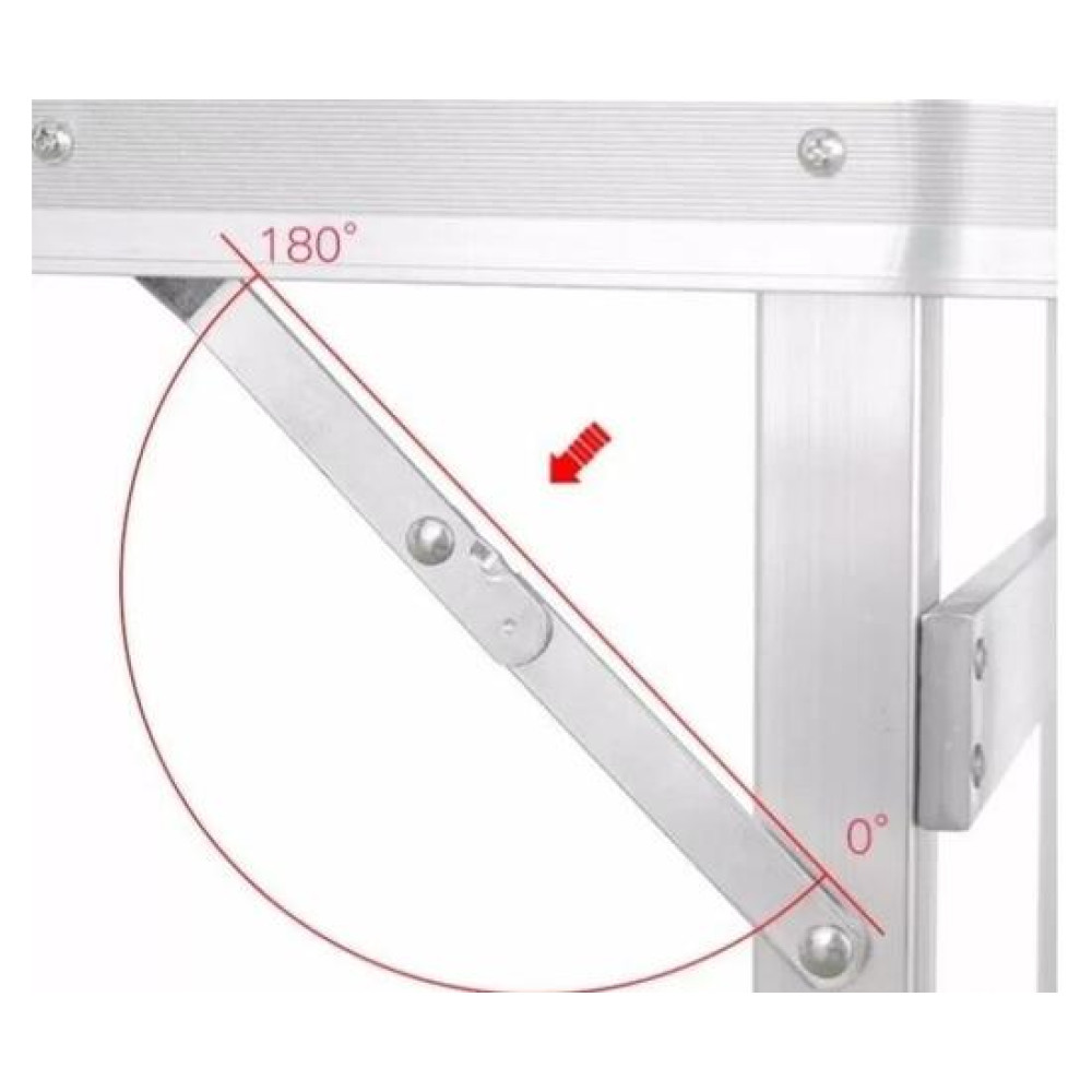 Имеет ручки для переноски и легко помещается в багажнике автомобиля; высота регулируется в 3-х режимах (55 см, 60 см и 70 см) и фиксируется с помощью кнопки; столешница из МДФ, покрытие столешницы — меламин, который обладает водоотталкивающими свойствами, устойчив к истиранию, легко моется; для устойчивого положения стола, ломберные петли на ножках фиксируются нажатием до упора