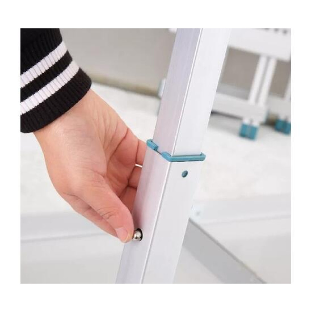 Изготовлен из алюминиевого сплава и выдерживает нагрузку на стол до 50 кг и на каждый стул до 100 кг