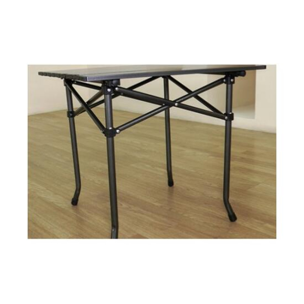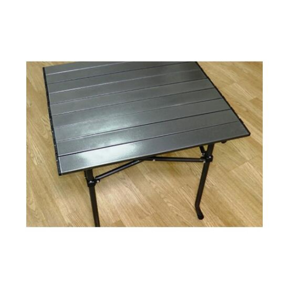 Столешница изготовлена из алюминиевых реек, что позволяет его компактно складывать в чехол и при этом стол остается очень мощным Размер(разложенный) (ДхШхВ) 53х51х49 см Размер(упакованный) 54х18х15 см Масса 2,5 кг
