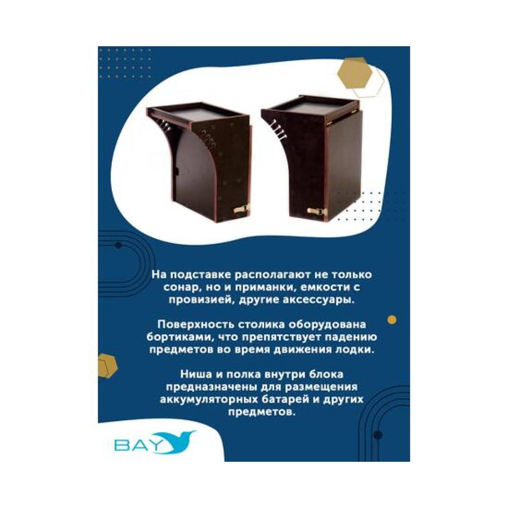 (может закрываться дверцей-столиком), четыре отверстия для фиксации спиннинга или удочки и площадка для монитора эхолота