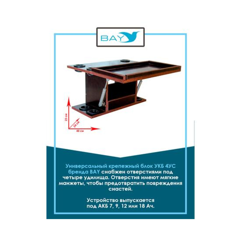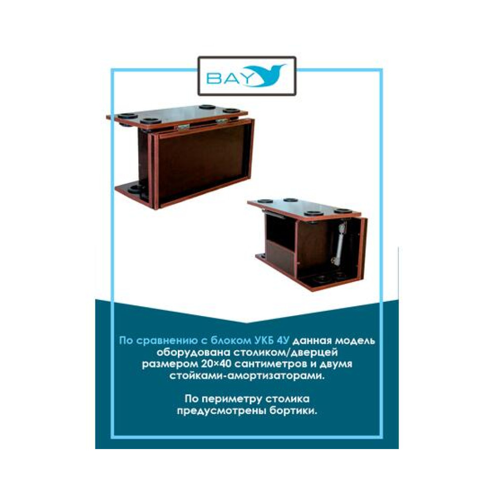 Модель с индексом 4УС оснащена двумя амортизаторами и бортиками по периметру столика/дверцы Подходит для большинства лодок с диаметром баллона до 43 см