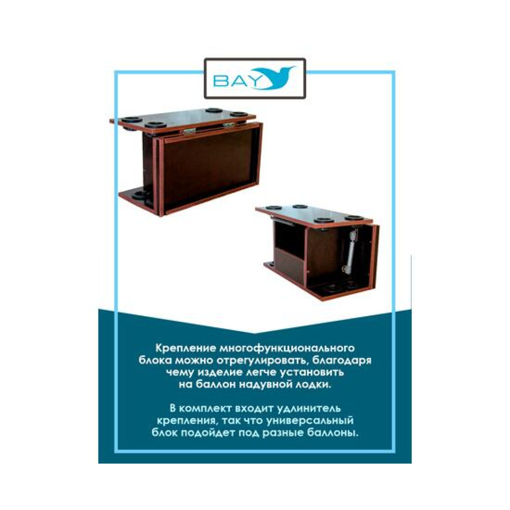 Быстро монтируется на ликтрос борта надувной лодки, в удобном для Вас месте, без использования дополнительного крепежа.Комплектуется специальным удлинителем крепления (под разные баллоны).Само крепление имеет регулировки для точной установки на баллон лодки
