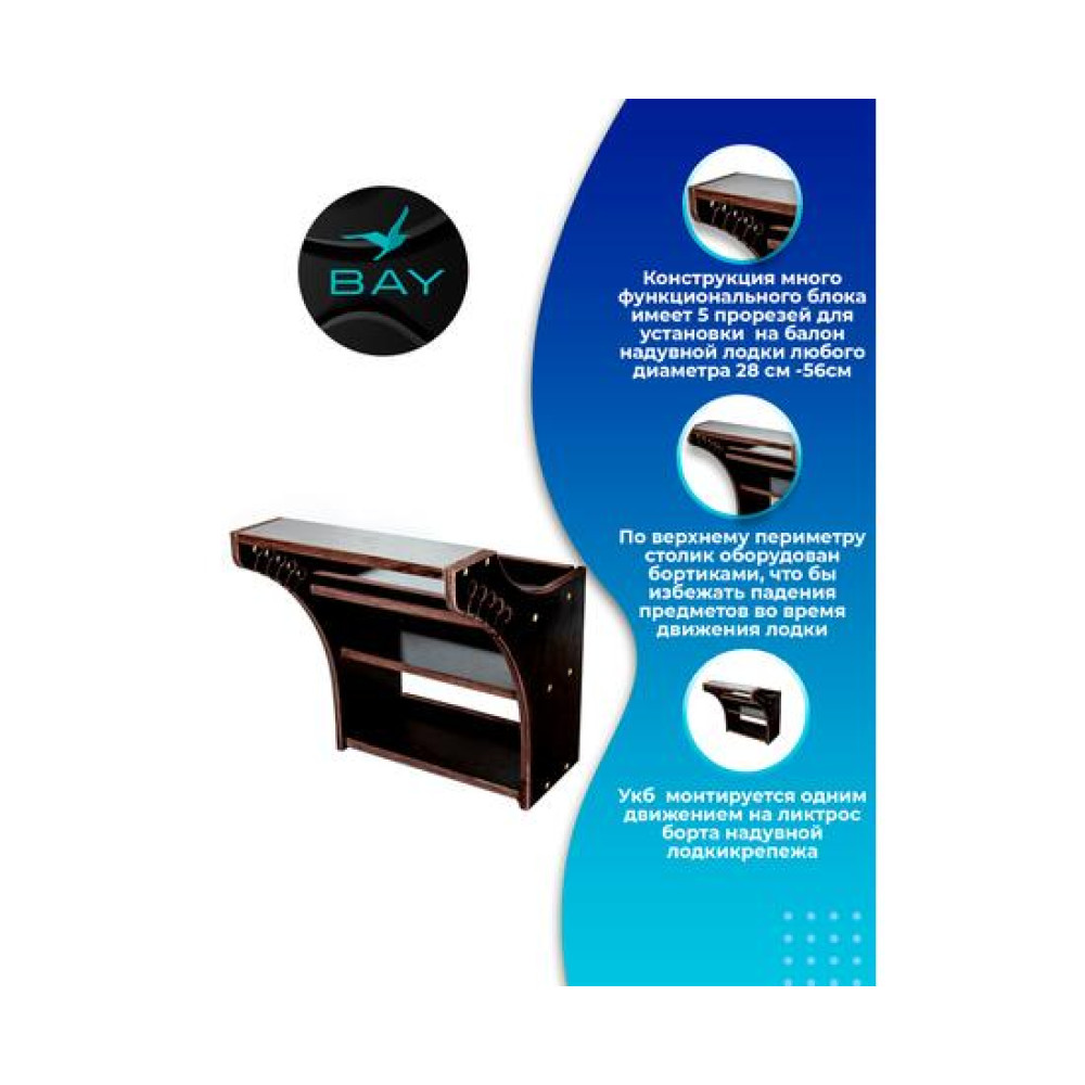 Быстро монтируется на ликтрос борта надувной лодки, в удобном для Вас месте, без использования дополнительного крепежа