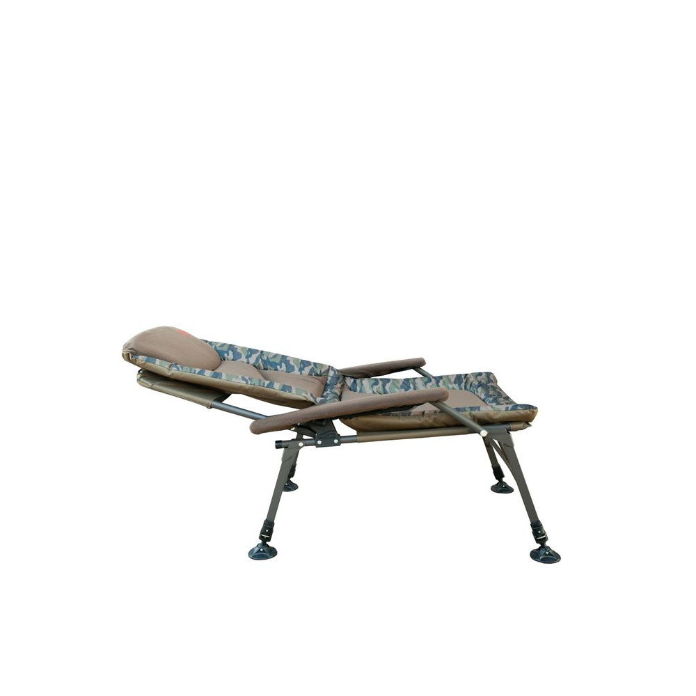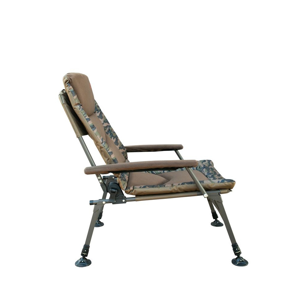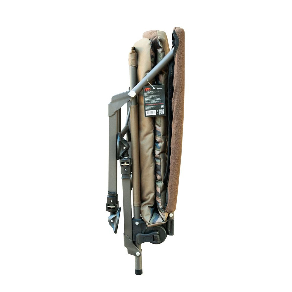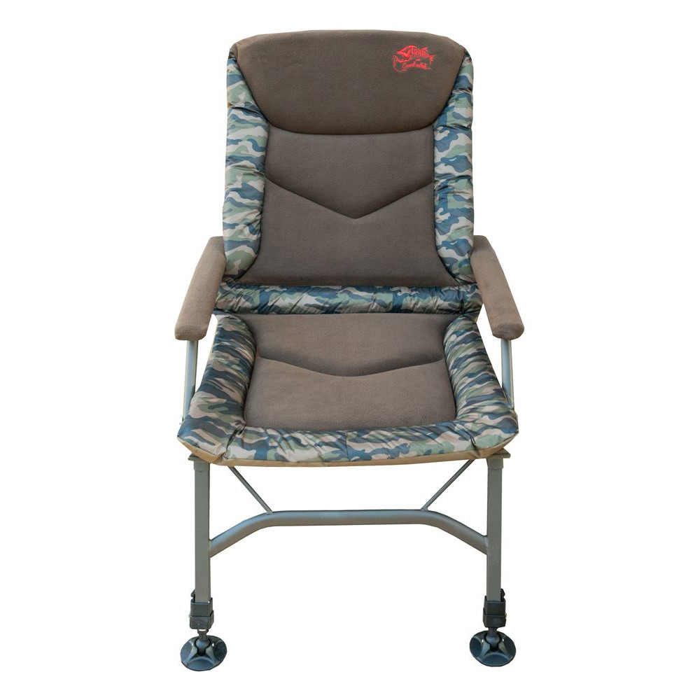 Камуфлированная под «осенний лес» ткань сидения отделана большими вставками из нежного микрофлиса.